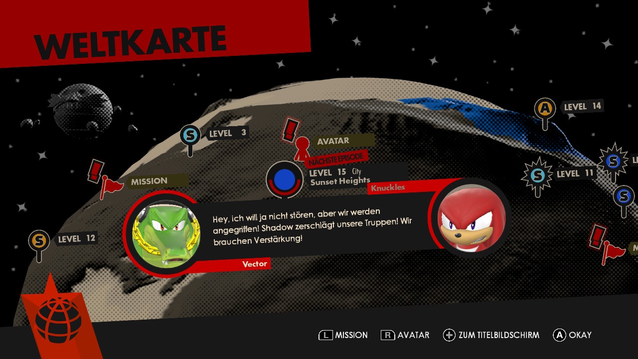 Bei aller Kritik muss jedoch lobenswert erwähnt werden, dass sich die Macher zumindest um weitere Spielanreize über die kurze Kampagne hinaus gekümmert haben. Neben den angesprochenen Ringen bietet jede Stufe nämlich noch weiteren Sammelkram, der zu wiederholten Anläufen motivieren soll. Eine nicht zu unterschätzende Anzahl an Bonusleveln gibt es ebenfalls, die es zudem teilweise auch ziemlich in sich haben und einiges an Geschick erfordern. Wem das noch nicht genügt, der kann sich an die umfassende Missionsliste mit zahlreichen Herausforderungen wagen – als Lohn winken dabei Kleidungsstücke und Bewaffnungen für euren Avatar. Nach den anfänglichen drei Stunden ist man also keineswegs komplett fertig. Die zum Testzeitpunkt kostenlos herunterladbare Bonus-Episode rund um den schwarzen Igel Shadow streckt das Spielerlebnis hingegen praktisch gar nicht. Der Download-Zusatz trägt vielleicht 20 Minuten und ist selbst in dieser Kürze holprig erzählt, liefert aber immerhin etwas mehr Hintergrundinformationen zum großen, neuen Gegner Infinite.