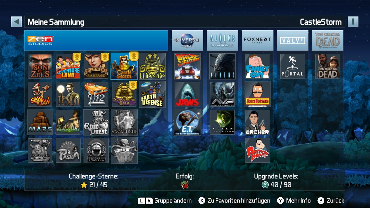 Stichwort „ärgerlich“: Die technische Performance von Pinball FX3 lässt leider ebenfalls noch leicht zu wünschen übrig. Zwar läuft das Spiel im TV-Modus flüssig, dafür wirkt das Bild insgesamt etwas niedriger aufgelöst und entsprechend grobkörniger als auf anderen Plattformen. Im Handheld-Modus schaltet Pinball FX3 dann auch noch die Bildrate auf 30 FPS und aufwendigere Tische wie etwa Son of Zeus neigen bei schnelleren Kamerafahren oder gewissen Zoomstufen schon mal zu Rucklern. Komplett unspielbar ist das Spiel dadurch glücklicherweise nicht, aber ein flüssigeres Spielerlebnis wäre definitiv wünschenswert – hoffentlich wird da noch per Patch optimiert. Immerhin: Im vertikalen Bildmodus, bei dem der Bildausschnitt statisch gehalten werden kann, fallen so gut wie keine Ruckler auf.