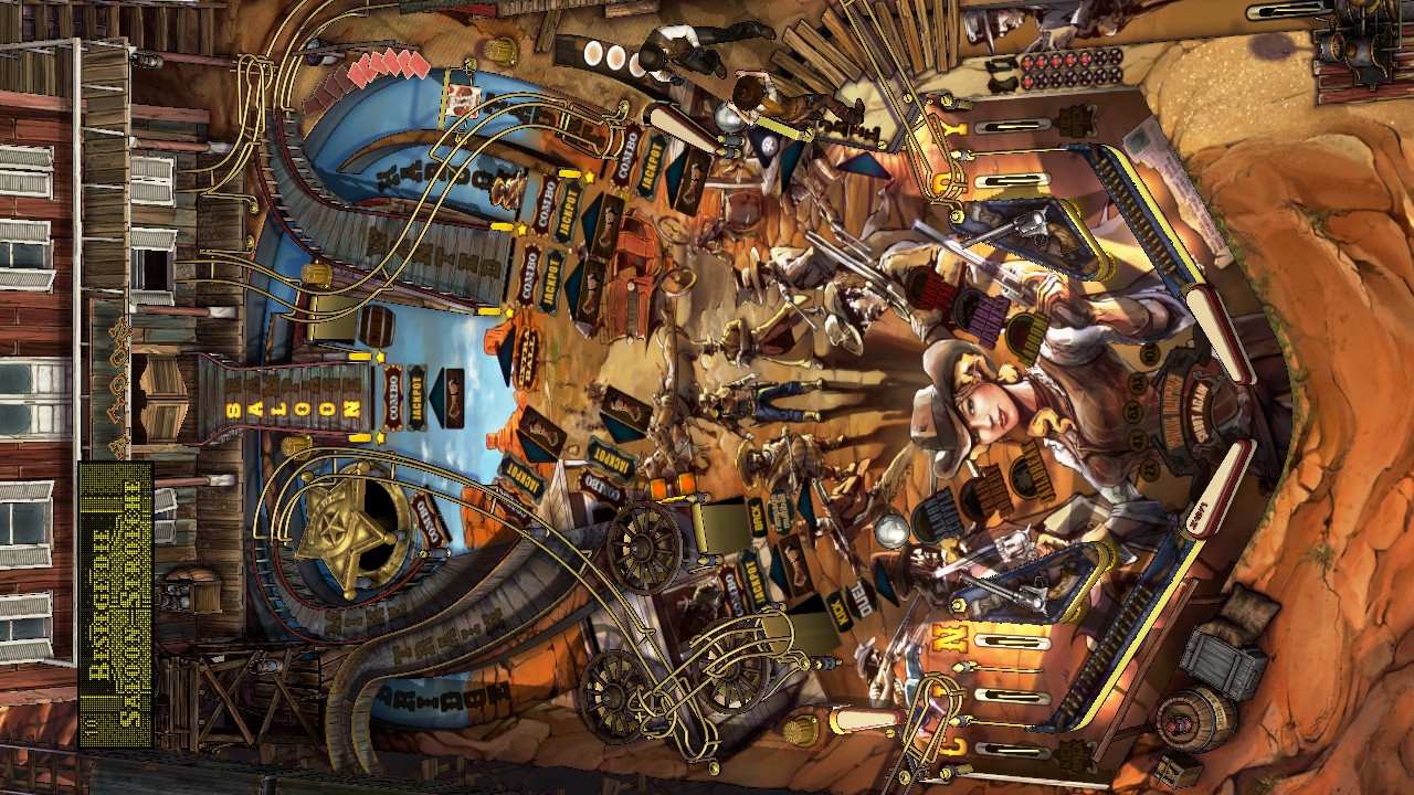Wild West Rampage ist hingegen etwas für Fortgeschrittene. Das wird schon schnell durch das etwas ungewöhnliche Design bemerkbar. Während manche Bahnen recht locker zu erreichen sind, erfordern die Quer-Rampen, die mit einem zweiten Flipperarm an der rechten Seite zu erreichen sind, für gezielte Schüsse schon enorm gutes Timing. Auch gibt es hier neben den zwei offensichtlichen Kunstschuss-Zielen noch einen versteckten Punktespender. Doch genau dieser Tiefgang ist es, der die Abenteuer des Sheriffs Cindy so interessant macht. Selbst einige der Missionen erfordern von euch gute Zielkünste, entlohnen dafür aber auch mit entsprechend reichlich Punkten. So können Banditen-Fallziele plötzlich aus den Eingangsbereichen der Bahnen springen, ihr könnt euch an einem High Noon-Duell versuchen oder auch auf die sonst dekorative Lokomotive auf der linken Seite aufspringen, um auf diversen Mini-Spielfeldern eure Flipper-Künste unter Beweis zu stellen. Ein fordernder Flipper, der eure Mühen und Übungsrunden dafür auch mit ordentlich Punkten entlohnt und zudem sein Szenario ziemlich gut umsetzt.