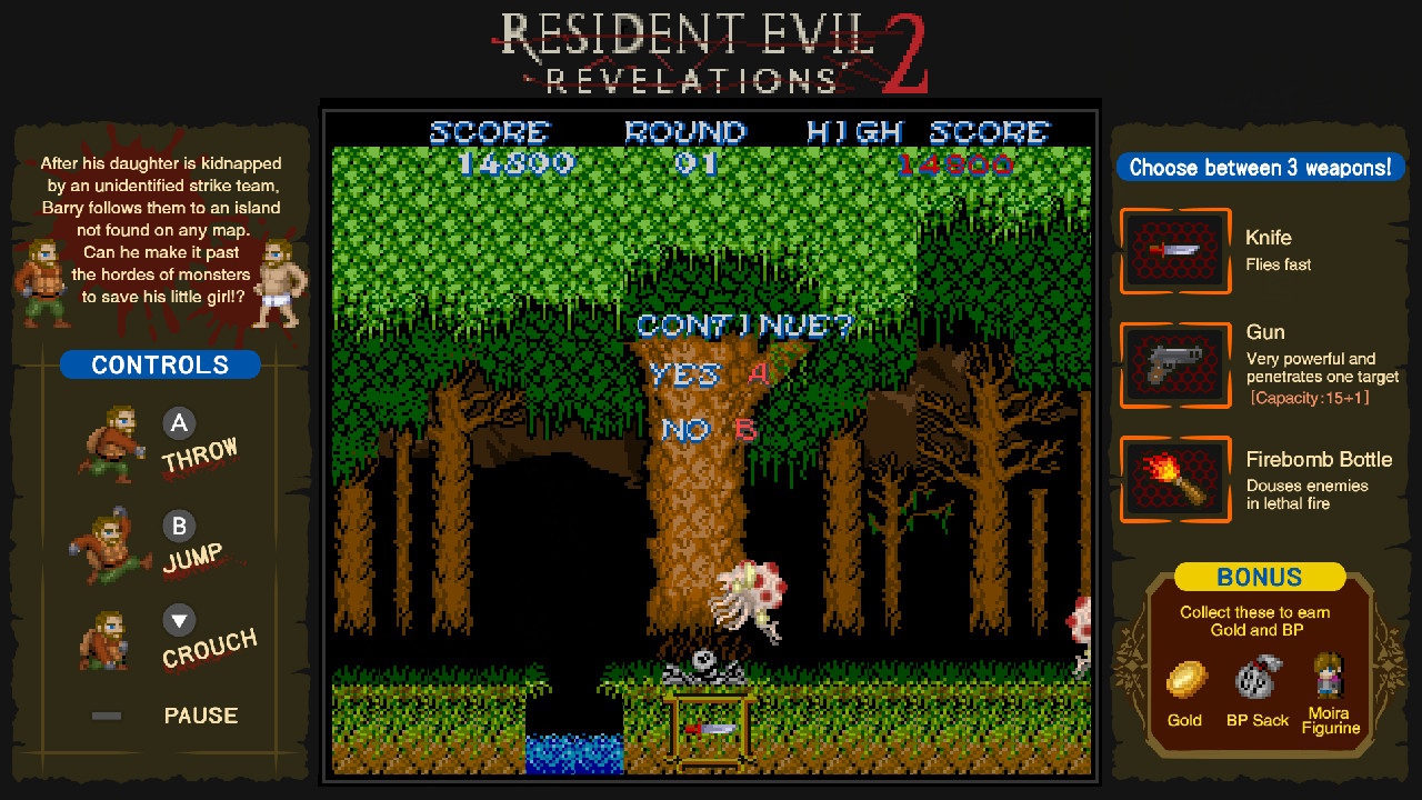 Bleibt nur noch die Frage, wie eigentlich der Port auf die Switch gelungen ist. Insgesamt eigentlich besser als erwartet: Optisch hat Revelations 2 nur ein wenig einstecken müssen, im Prinzip erstrahlt es noch immer in seiner alten, wohlig atmosphärischen Pracht – auch wenn die in freier Wildbahn ins Bild wachsenden Grasbüschel bei näherer Betrachtung etwas albern wirken können und die Mimik der Charaktere außerhalb von Zwischensequenzen zu wünschen übrig lässt. Trotzdem eine erstaunliche Leistung, die sowohl im TV-Modus am heimischen Bildschirm als auch im Mobilbetrieb zu begeistern weiß. Leider hat die Pracht auch ihren Preis, denn die Ladezeiten sind leider nicht von schlechten Eltern. Es kann gut und gerne mal eine Minute dauern, bis das nächste Szenario geladen ist. Im Story-Modus mag das nicht so ein großes Problem sein, da man abseits vom Neuladen beim Ableben nur beim Kapitelwechsel eine waschechte Verschnaufspause hinnehmen muss, im Raubzug-Modus sieht die Angelegenheit jedoch etwas anders aus. Hier brauchen die beiden Koop-Partner auf jeden Fall einiges an Geduld, wenn sie sich durch die Missionen ballern möchten. Da hätte es sich prima angeboten, das Switch-exklusive Minigame – eine Ein-Level-Abwandlung von Ghosts'n Goblins mit Barry Burton in der Hauptrolle – als Ladepausenüberbrücker zu nutzen, doch das ist leider nur als komplett isolierte Nebenbeschäftigung in der Raubzug-Lobby anwählbar.