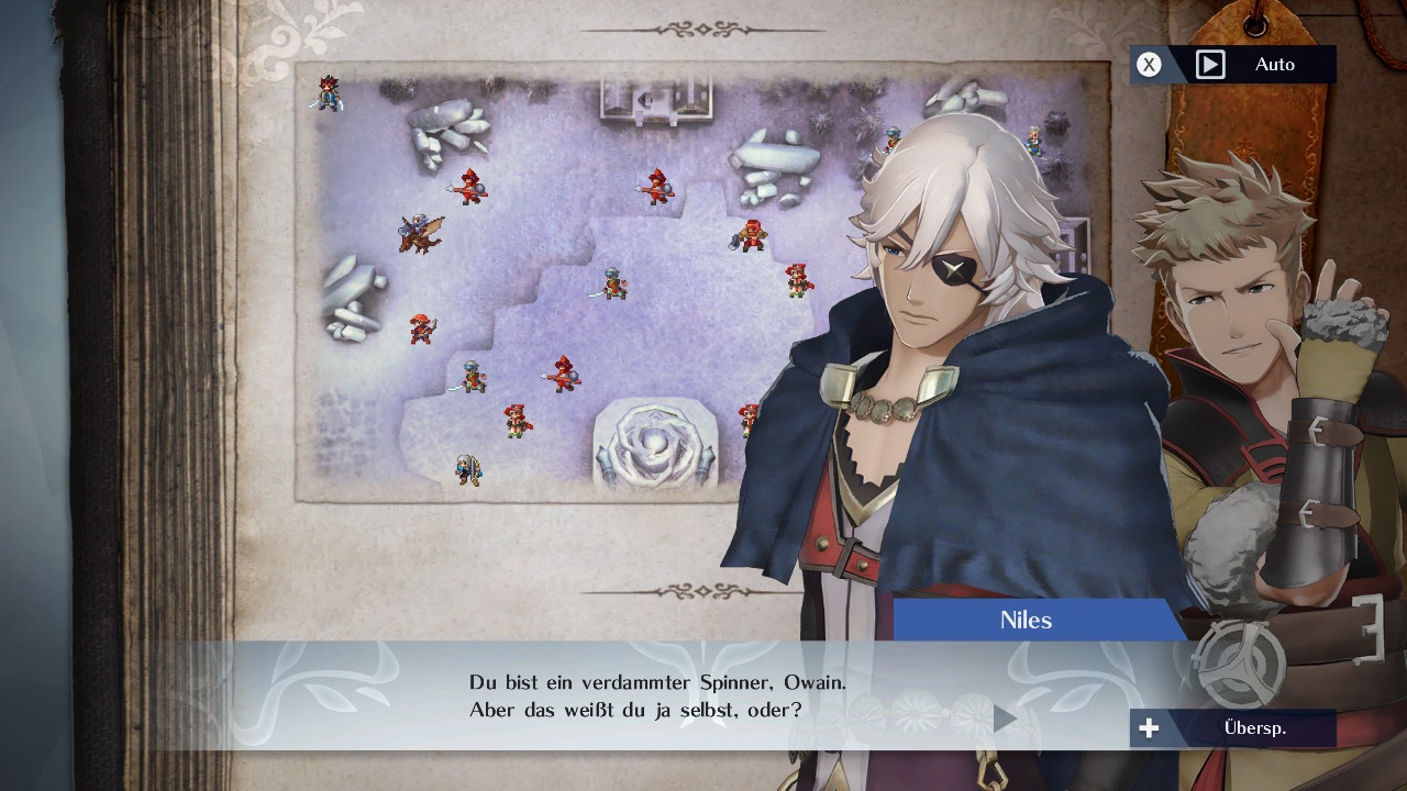 Doch natürlich sind die neuen Helden nicht ohne weitere Gastgeschenke eingetroffen. Gleich drei neue Karten für den Historischen Modus haben sie im Gepäck, die jeweils mit einem Meistersiegel zur Beförderung des Trios daherkommen. Für die Karten standen selbstverständlich drei weitere Missionen aus Fire Emblem Fates Pate. In „Trauernde Bestie“ erlebt ihr den Moment gegen Anfang des Spiels, in dem Corrins Drachenkraft erstmals erwacht. „Land der Götter“ lässt euch den etwas exzentrischen Herrscher Izana Shiida treffen, nur um dann in eine Falle zu tappen. Und in „Eisiger Empfang“ dreht sich alles um einen Besuch der mit Nohr alliierten Corrin in einem Schnee-Dorf, das eine Rebellenzelle beheimatet. Klingt an und für sich ziemlich cool, nur leiden die Karten an einem grundlegenden Problem von Fire Emblem Warriors' Bonus-Modus: Sie bringen nichts wirklich neues in Sachen Spielablauf mit, weil sich aus dem Grundkonzept wenig herausholen lässt. Stattdessen schlagt ihr euch nach und nach durch die Missionen, um die eintrudelnden Verstärkungen auszuschalten und irgendwann den Kartenboss in die Knie zu zwingen. Wirklich interessante Abwandlungen dieses Schemas oder interessante Gimmicks, wie es bei den Abenteuer-Karten von Hyrule Warriors der Fall war, sucht man leider vergebens.