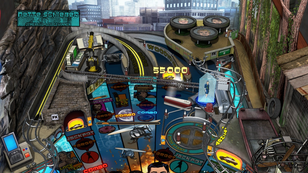 Damit bleiben nur noch die Abenteuer des Agenten Archer. Dieser Tisch dürfte der wohl schwierigste und zumindest vom Layout her ungewöhnlichste im Balls of Glory-Paket sein. Im Prinzip besteht er aus einer oberen Hälfte, wo ihr mit einem Flipper-Arm recht zielgenau die hiesigen Rampen erwischen könnt, und einer unteren Hälfte, von wo aus die teils ziemlich kniffligen aber nie frustrierenden Missionen gestartet werden. Stilecht über den Kofferraum eines geparkten Wagens, versteht sich. Die einzigartige Idee dieses Tisches: Bei den Aufträgen kassiert ihr Geld, das ihr wiederum in diverse Upgrades wie etwa Punkte-Booster investieren könnt. Definitiv ein stylischer Flipper, der fortgeschrittenen Pinball-Freunden viel Tiefgang bietet! Allerdings sind auch hier, ähnlich wie bei Family Guy kleine Schattierungs-Grafikfehler zu verzeichnen, die sich zwar nur auf die Bumper-Spielfläche im rechten oberen Teil beschränken, hoffentlich aber trotzdem per Patch noch behoben werden.