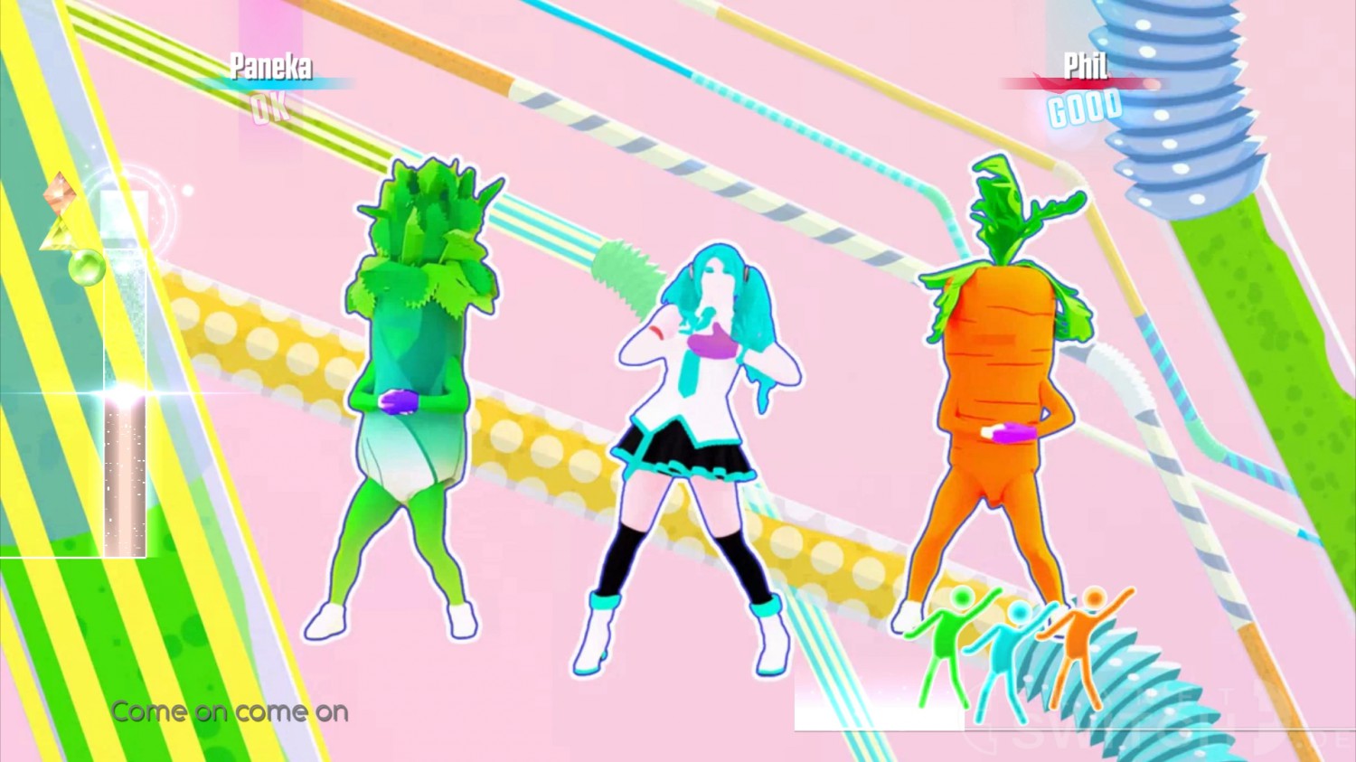 So viel zu den fehlenden Hilfestellungen für Anfänger, weiter ging es anschließend beim eigentlichen „Tanzen“. Hier machten sich auch einige Hürden bemerkbar, was dann allerdings nicht mehr nur am System lag, sondern auch am tanzenden Tester. Unbegabte dürften es anfangs nämlich recht schwer haben, in den über 40 neuen Songs mit den schematisch dargestellten Vortänzern auf dem Bildschirm Schritt zu halten. Mit der Zeit jedoch gelang es mir sogar halbwegs gut, mit den Vortänzern mitzuhalten, natürlich hängt das aber auch stark vom Lied ab. Auch die Reizüberflutung legt sich mit der Zeit: So lernt man irgendwann, sich auf die Hand des Tänzers zu fokussieren und gelegentlich auf die unten rechts eingeblendeten Tanzbewegungen zu schauen. So wurden aus Fails und „OKs“ dann irgendwann auch viele „Perfekts“. Trotz anfänglicher Schwierigkeiten können also auch Einsteiger und Bewegungsmuffel durchaus ihren Spaß haben. Mit Freunden zusammen gibt es zudem noch das gewisse Etwas, doch muss man aufpassen, sich bei den teils wilden Bewegungsabläufen nicht gegenseitig die Köpfe einzuschlagen.