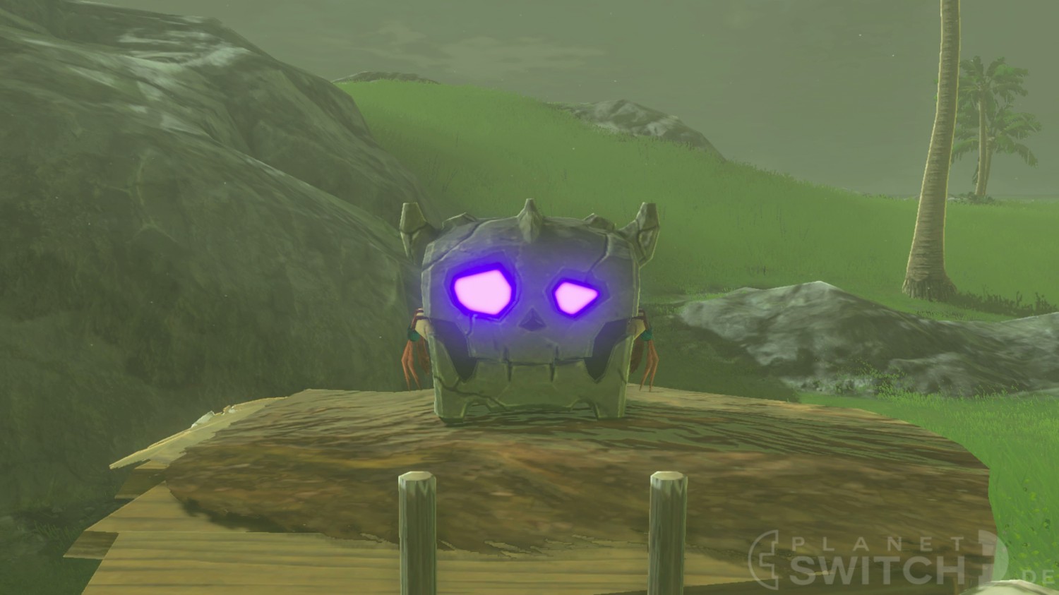 Doch nur hinlaufen und freuen ist nicht. Auf dem Weg dahin stößt man nämlich schon auf einige Ablenkungen - etwa ein Moblin-Lager. Also vorsichtig angepirscht und die Gegner von hinten mit einer gefundenen Holzfälleraxt attackiert. Sind alle Schergen beseitigt, ertönt ein Gong und eine Belohnungstruhe öffnet sich für uns. Glücklicherweise ist dort eine etwas geeignetere Waffe drin. Dank Schnellmenü ist diese auch flugs ausgerüstet und weiter geht es. Zunächst aber noch kurz einen vom Eremiten geklauten Apfel auffuttern, um den eingesteckten Schaden zu heilen. So funktioniert das nämlich in The Legend of Zelda: Breath of the Wild. Man schneidet von nun an kein Gras mehr oder schluckt Elixiere, sondern sammelt Essen und verfeinern es, doch dazu später mehr. Endlich beim Schrein angekommen. Hm, sieht irgendwie seltsam aus, fast schon wie ein Hut oder so etwas in der Art. Auch dort legen wir den Shiekah-Stein ein und schon öffnet sich in einer hübschen Animation die Pforte, dahinter ein magischer Fahrstuhl, der Link nach unten befördert. Nun kommt der spannende Teil, der Schrein ist nämlich so etwas wie ein Mini-Dungeon. Löst man das Rätsel im Innern - der Titel gibt stets einen vagen Lösungshinweis - so entlohnt uns der Schrein mit einem bestimmten Item. Was dieses Item bewirkt, sollt ihr aber schön selbst herausfinden, denn das ist es letztlich, was das neue Zelda-Spiel ausmacht. Von den Schreinen gibt es im Laufe des Spiels jedenfalls unzählige, doch die Aufgaben könnten abwechslungsreicher nicht sein.