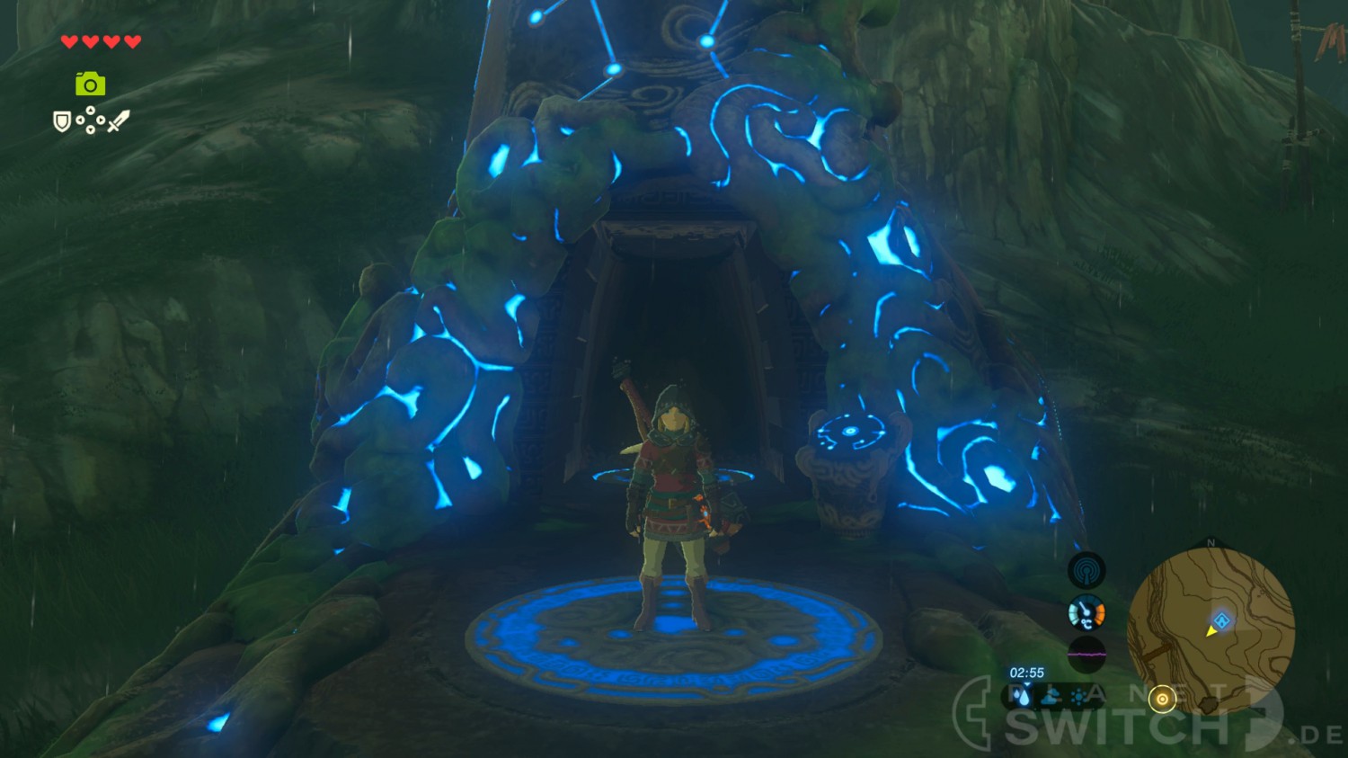 „Wach auf, Link.“ Eine Stimme auf dem Off, während unser Held Link in der aus der Demo bekannten Szene in einer merkwürdigen Höhle aufwacht. Natürlich folge ich der Stimme und mache mich schleunigst auf den Weg nach draußen, wo etwas Startausrüstung und ein alter Eremit auf mich wartet. Bis hierhin dürfte es zumindest denjenigen unter euch bekannt sein, die sich im Vorfeld schon etwas informiert haben. Links bisher größtes Abenteuer startet dabei in einem kleinen Areal der enorm riesigen Oberwelt - die „Ebene des Vergessens“. Aus diesem Areal kommt man zu Beginn auch nicht wirklich heraus, da es von einem tiefen Abgrund und riesigen, eiskalten Bergen umzäunt wird. Zumindest der Abgrund wäre machbar, hätte man so etwas wie einen Gleiter. Zunächst soll man aber auf einen Turm klettern. Oben angekommen, setzt man zuvor erhaltene Shiekah-Tablet dort ein, woraufhin man quasi einen „Download“ startet, welcher das Kartenmaterial für das aktuelle Areal auf dem Shiekah-Stein ablegt. Der Weg nach unten ist denkbar mühsam, erneut muss ich nämlich wieder klettern. Wie aber kommt man nun aus dem Startgebiet weg? Ach ja, ein Gleiter… Wie es der Zufall so will, hat der alte Mann vom Beginn eine solche Gerätschaft. Der Kauz verlangt jedoch etwas von mir, und zwar soll ich ihm einen Schatz bringen, der in einem sogenannten Schrein versteckt ist. Also nicht wie auf zu diesem Schrein!