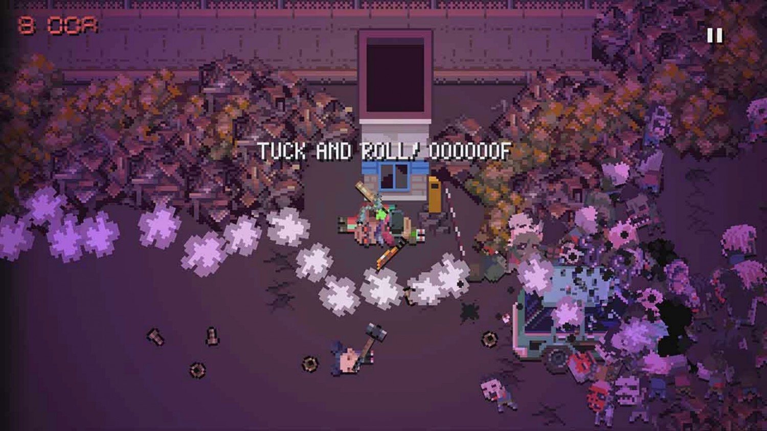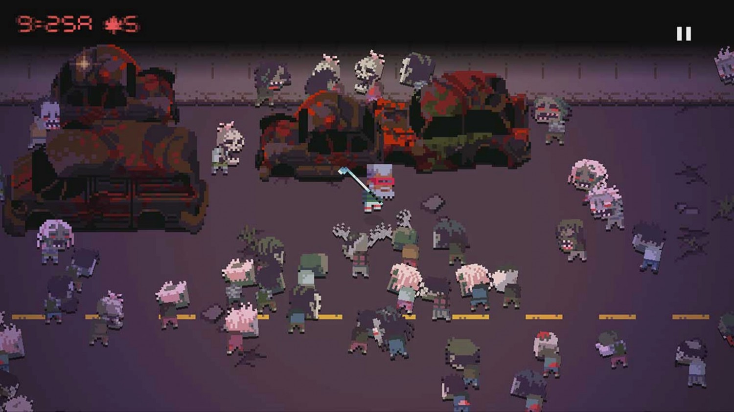 Sind alle Vorbereitungen getroffen, geht es auf Beutezug: Der Wagen erreicht den ausgewählten Ort und alle Insassen verlassen das Gefährt. In klassischer Top-Down-Perspektive kann ich den Anführer durch die Gegend steuern, während ihm das restliche Team folgt. Je nach Einstellung in den Teamoptionen bleiben die Teamkollegen mit den Zombies auf Abstand oder greifen sie mit Nah- oder wahlweise Fernangriffe an. Kleine herumstehende Objekte wie einen Einkaufswagen kann ich per Knopfdruck aufheben und als Wurfobjekt verwenden, um mich über meine Hauptwaffe hinaus weiter wehren zu können. Allerdings kosten Nicht-Schusswaffen beim Einsatz ordentlich Energie, irgendwann bricht mein Charakter in Schweiß aus und muss sich erholen, bevor er weiter Zombies kloppen kann. Per Knopfdruck kann ich allerdings zwischen den drei Waffen wechseln, die ich im Inventar habe. Jedes gefundene Beutestück wird übrigens automatisch eingesammelt, Waffen muss ich dagegen manuell aufnehmen und notfalls eine andere Waffe fallen lassen, falls die drei Slots besetzt sind. Eine Lebensanzeige für mich und meine Freunde gibt es übrigens nur im Pausemenü, es kann also ziemlich flott passieren, dass ich mitten in einem Ansturm an Zombies versterbe. Dann übernimmt ein anderer meiner Mitstreiter die Führung und ich kann weiter versuchen mich freizukämpfen.