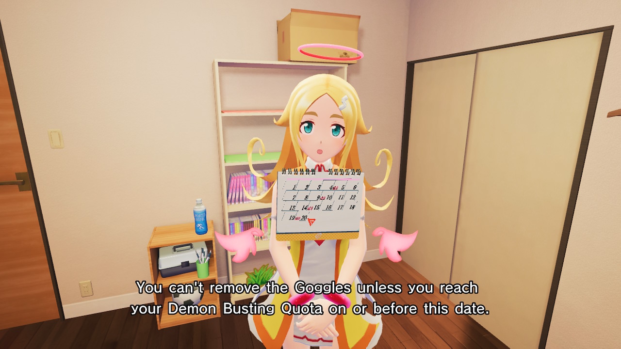 Besser rettet man sich da schon eher mit ein paar Upgrades, die ihr nach Abschluss bestimmter Missionen erhaltet. So kann euer Anti-Teufelchen-Staubsauger im aufgeladenen Zustand dann auch gleich die Kleidung der Mädchen bis auf die Unterwäsche reduzieren – mit der Schamesröte im Gesicht lassen sie dann natürlich von euch ab, Punkte gibt es für dererlei Aktionen jedoch nicht. Und die Punkte werden immerhin für den Spielabschluss gebraucht! Wobei das weitaus nachdrängender klingt, als es tatsächlich ist. So gibt euch das Spiel zwar 20 Ingame-Tage mit jeweils zwei Aufträgen Zeit, um euer nicht näher definiertes Punkte-Ziel zu erreichen und eines der Enden freizuschalten, doch einerseits ist das mehr als genug Zeit und andererseits könnt ihr im New Game+ eure Punktzahl sowie vorher freigeschaltete Upgrades in eine neue Runde übernehmen.