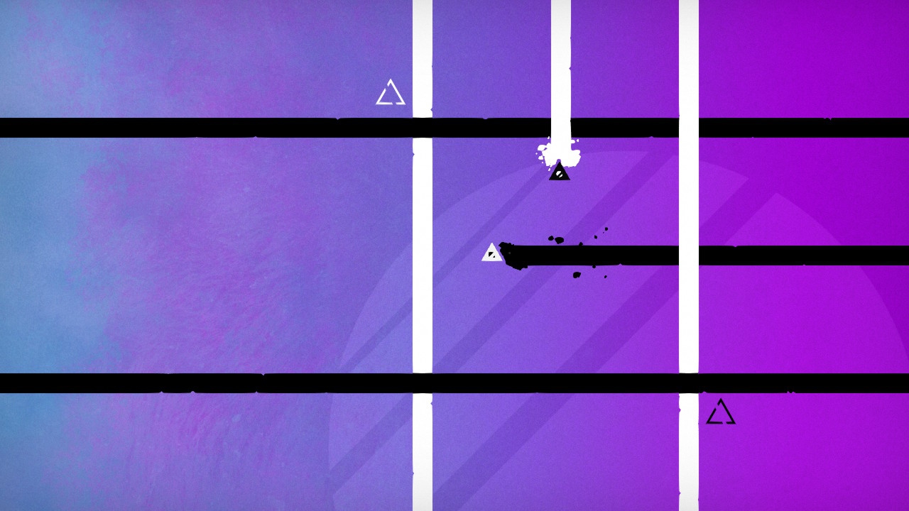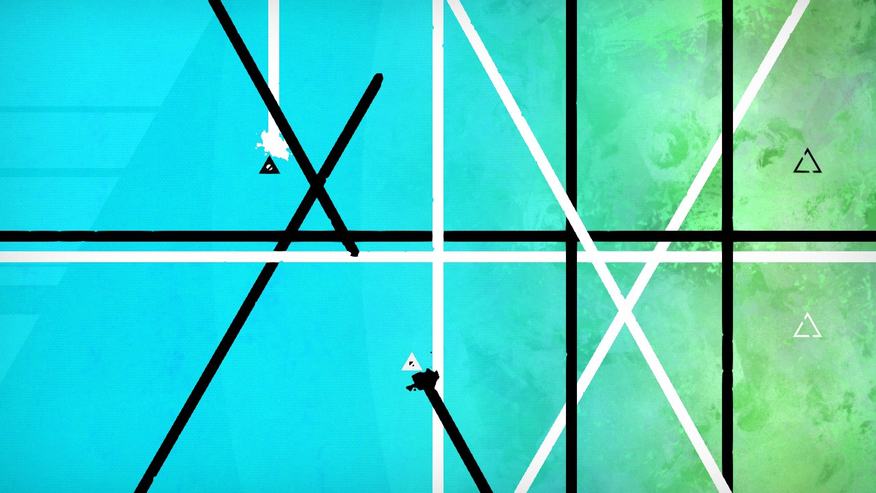 Aufgabe einer jeden Stufe ist es, eure schwarzen und weißen geometrischen Figuren zu ihren jeweiligen Zielpunkten zu navigieren. Diese sind jeweils einem Analogstick der Joy-Cons zugewiesen. Idealerweise schnappt sich dabei ein Spieler den linken Mini-Controller und der andere den rechten, man kann sie aber auch als Einzelspieler klassisch im Grip oder im Handheld-Modus nutzen. Online-Modi gibt es übrigens keine. Jedenfalls mag das äußerst einfach klingen, doch ohne Hindernisse kommt auch Deru nicht aus. Jeder bildschirmgroße Level ist nämlich von fließender, schwarzer und weißer Suppe gesäumt, die eure jeweils gleichfarbige Figur bei Berührung zersetzt. Umgekehrt kann der entgegengesetzte Farb-Pol den Fluss stoppen – und darin liegt auch schon der Kernaspekt der Kooperation. Es gilt also, geschickt Wege für den jeweils anderen Lichtpunkt zu schaffen und so schlussendlich beide zu ihren Bestimmungsorten zu transportieren. Wie eingangs erwähnt: Ein schnell erklärtes Spielprinzip.