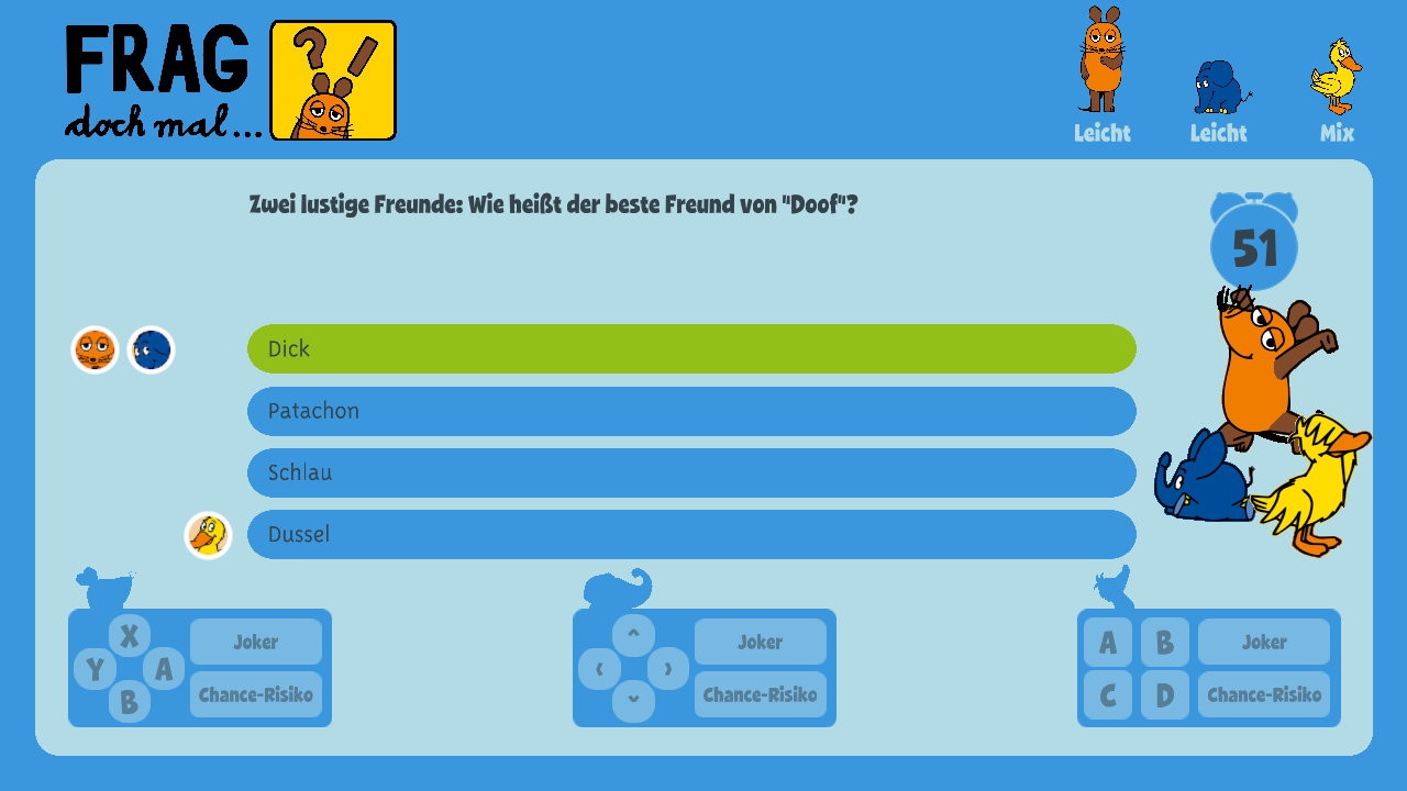 Es wird Zeit, mal etwas für den Kopf zu tun! Und da Gehirnjogging-Programme derzeit (noch) auf der Switch ausbleiben, muss eben ein kindgerechtes Quiz mit Brettspielkomponente herhalten. Wobei ich an dieser Stelle gleich vorwegnehmen möchte, dass sich Frag doch mal… die Maus zwar als Familienspiel versteht, vornehmlich aber natürlich an die jüngeren Zocker gerichtet ist. Wobei letztenendes wohl fraglich ist, wie lang selbst diese sich mit dem vergleichweise preisgünstigen eShop-Download vergnügen möchten, denn die generell einfache Aufmachung erweist sich als Fluch und Segen zugleich.