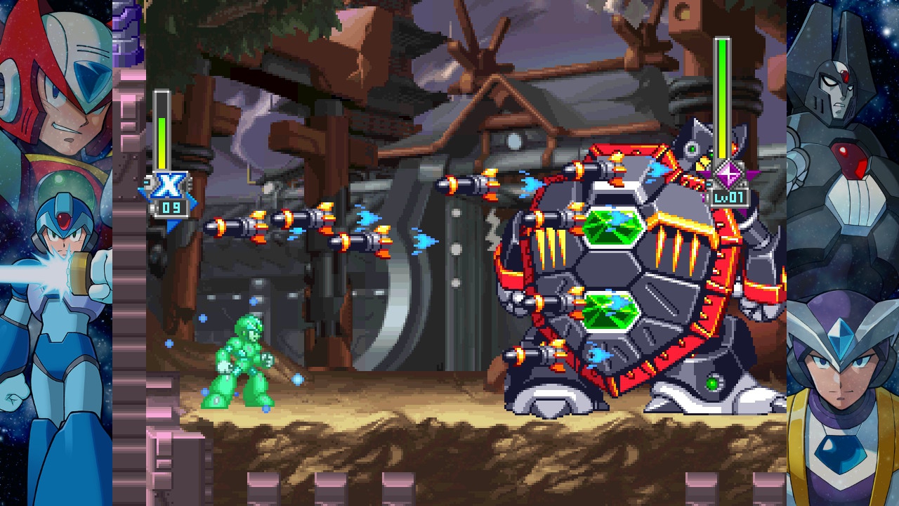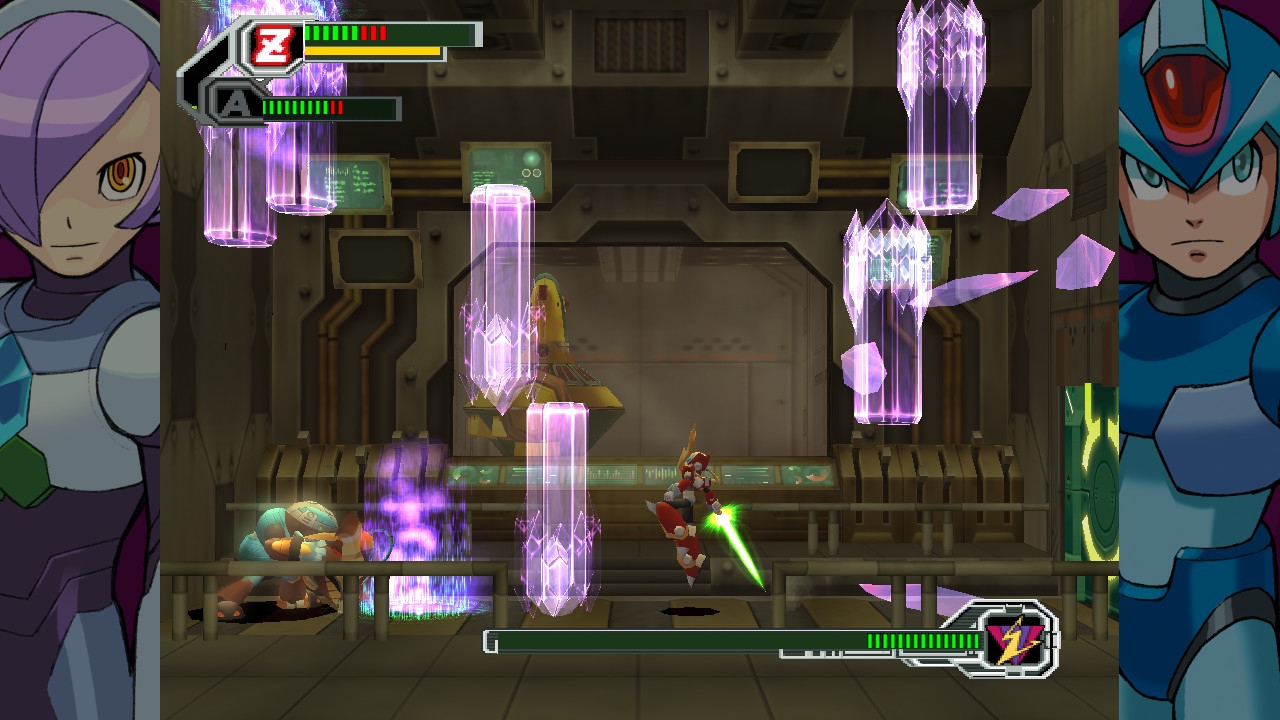 Wobei das zumindest im Falle von X5 noch etwas übertrieben ist, stellt diese Episode wohl das Highlight der Sammlung dar. Das Level-Design ist stimmig, durch das Szenario kommt einiges an Druck ins Spiel und die Bossfights haben es in sich – so, wie es sich für Mega Man X gehört. Dieser Spielfluss wird höchstens durch die ständigen Plaudereien mit Navigatorin Alia gestört, die in Folgespielen zum Glück nur auf Knopfdruck zu quasseln anfängt. Ansonsten läuft alles wie gehabt: Ihr turnt wahlweise mit Blaumann X oder Schwertschwinger Zero durch actionlastige 2D-Areale, in denen Primär die Altmetallbeseitigung an der Tagesordnung steht, knifflige Sprungpassagen jedoch auch in großer Zahl vertreten sind. Gerade X6 sticht hier als besonders harter Kandidat heraus, der in vielen Fällen sogar praktisch ins Unfaire entgleist. Wenn man beispielsweise eine bewegliche Plattform außerhalb des Sichtfelds erwischen muss, die auch noch von tödlichen Stacheln umgeben ist, ist das nicht herausfordernd, sondern schlichtweg nervtötend. Hinzu kommt das Albtraum-Gimmick des Spiels, bei dem zufällige Stages mal mit erschwerten Bedingungen aufwarten. Dann müsst ihr etwa auch mit saurem Regen klarkommen, während ihr euch durch die verwinkelten Level kämpft. Mein Tipp: Den Stolz runterschlucken und zumindest für X6 den Anfänger-Modus einschalten, denn durch die – leider immer noch nicht im Detail konfigurierbaren – virtuellen Stützräder wird dieser Höllentrip sogar glatt für Leute ohne masochistische Ader genießbar.