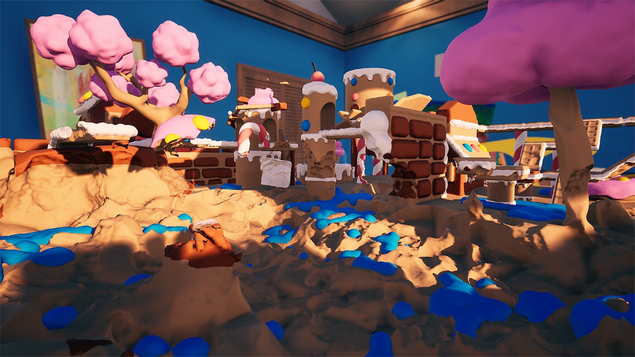 Um zumindest ein wenig Abwechslung in die Sache zu bringen, hat man mit jedem geschafften Abschnitt immerhin neue stets durchwechselnde Ziele. So muss man beispielsweise an einer Stelle mit seinem Knetkorpus alle in der Welt verteilten Schokostückchen „aufessen“, über diverse Checkpoints möglichst schnell in Ziel rollen oder etwa eine Flüssigkeit in bestimmte Behälter umlenken. Davon abgesehen gibt es noch ein wenig mehr Variationen, wirklich Spannung kommt aber nie auf. Der Reiz entsteht eher dadurch, dass sich die Welt unter seinem Knetkorpus dynamisch verformt. Brettert man so etwa zu unvorsichtig über eine schmale Planke, ist diese beim nächsten Versuch komplett ruiniert und damit unpassierbar. Da kommt dann das Zurückspulen und Stempeln ins Spiel, was durchaus eine nette Idee ist. Per Knopfdruck kann man nach einem Fehler so etwa zurückspulen und etwas erneut versuchen. Die Welt bleibt dabei allerdings unverändert, es handelt sich also nicht um eine Zeitreise-Funktion. Wenn man es denn so möchte, kann man auch einen „Abdruck“ seiner aktuellen Form hinterlassen, und so durch gezieltes Abstürzen etwa einen Weg zu einem höhergelegten Ziel bauen. Durch diese Features lassen sich allerlei Dinge ausprobieren, man hat aber auch die Wahl, einfach geschickt und bedacht vorzugehen und mit den Eigenheiten des Levels auszukommen.