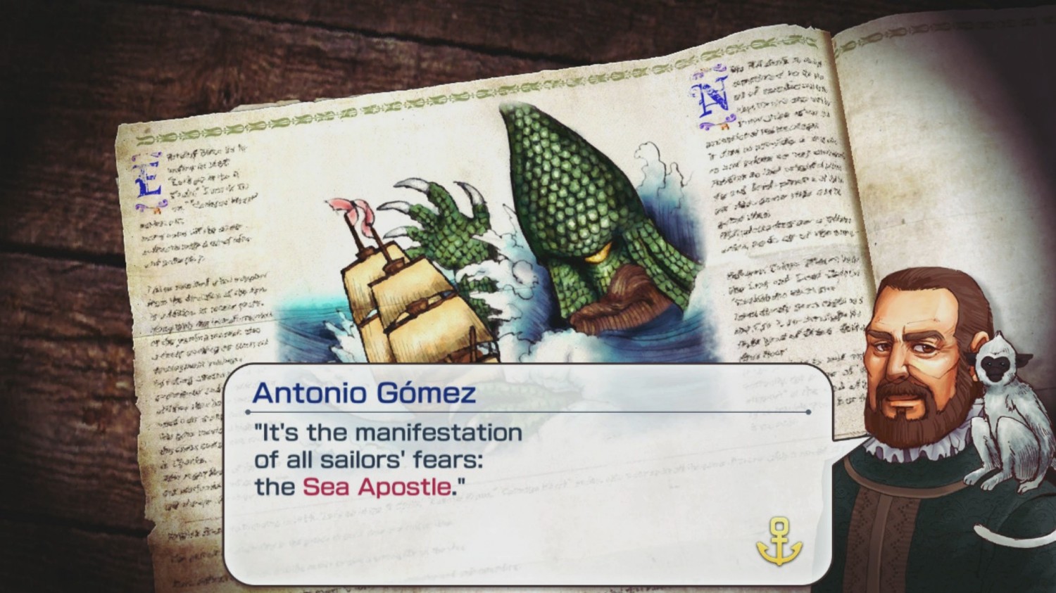 Doch bis ich selbst endlich meine eigenen Entscheidungen treffen darf, muss ich viele Tutorials und vorgegebene Questabläufe bewältigen. Die Afrikareise ist dann eine der ersten Möglichkeiten, relativ frei über das weitere Vorgehen zu entscheiden. Doch auch hier versperren Kraken und Piraten den Weg nach dem vermeintlichen Amerika. Sie sind nahezu unbesiegbar, bis die eigene Flotte bessere Kriegsschiffe und Waffen freigeschaltet hat, um sich mit den menschlichen und tierischen Monstern zu messen. So bleibt das Kap der Guten Hoffnung für eine lange Zeit das einzige Etappenziel nach Zipangu, das wohl das heutige Japan repräsentieren soll. Da die anfänglichen Schiffe auch in ihrer Reichweite stark eingeschränkt sind, bleiben die weiten Meere meistens tabu und es gilt an den Küsten entlang zu schippern, um schnell einen neuen Hafen erreichen zu können. Dies verhindert dann natürlich, dass ich vorzeitig zu den Kontinenten Amerika und Australien gelange, was natürlich geschichtlich nicht unbedingt falsch ist – schließlich entdeckte Kolumbus Amerika auch erst 1492. Neben den Statistiken der einzelnen Schiffe der Flotte ist auch der jeweilige Admiral entscheidend für die Fortschritte des Verbunds. So ist Goméz inzwischen sehr erfahren in der Erkundung unbekannter Gewässer und sein Kollege Peres Experte auf dem Gebiet der Erkundung lokaler Landgebiete. Später treffe ich außerdem noch eine Dame, die besonders gut tauchen kann, und einen Herren, der sich exzellent in Kämpfen schlägt. Je nach Einsatz gewinnt das Führungspersonal mehr Erfahrung in diesen Bereichen und wird so immer besser, was sich dann in höhere Reichweiten, mehr Glück oder höherer Kampfkraft niederschlägt.