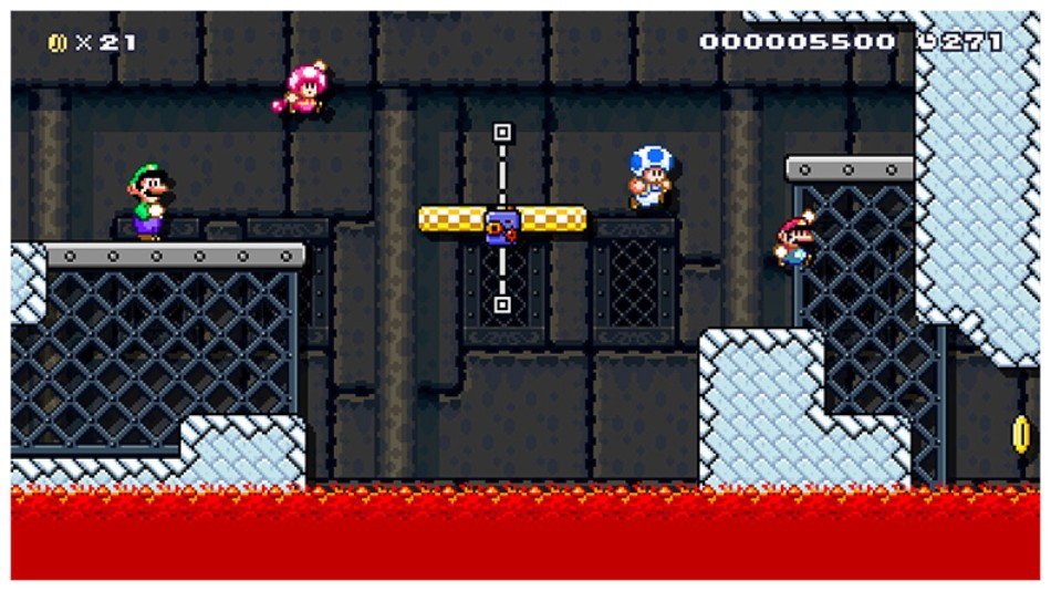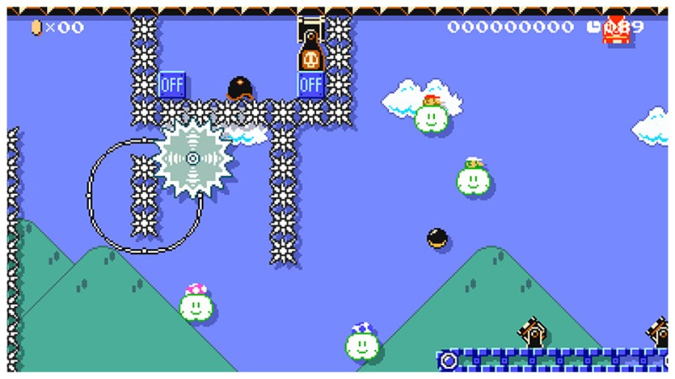 Nicht nur das Highlight, sondern schlichtweg das Alleinstellungsmerkmal von Super Mario Maker 2. Schon im Vorgänger konnten kreative (und manchmal auch weniger kreative) Hobbybastler unheimlich tolle Welten zusammenbauen. Hier hat Nintendo allerdings bei den reinen Möglichkeiten nochmal eine ganze Baggerschaufel nachgelegt. Schon in der Nintendo Direct-Ankündigung bestand der Trailer quasi nur aus einem Showcase der unzähligen neuen Features. Das macht es schwer alles hier im Test zu behandeln, weshalb ich mich auf ein paar der – für mich – wichtigsten Neuerungen beschränke. Zum einen kommt nun ein weiteres Thema im Stile von Super Mario 3D World hinzu. Allerdings darf man hier noch nicht richtige 3D-Welten bauen, sondern bekommt stattdessen ein zu New Super Mario Bros. ähnlichen Stil mit aus 3D World geklauten Elementen wie Katzen-Mario. Auch das Gameplay ändert sich hier erneut, so macht Mario nun etwa auf Befehl eine Luftpirouette statt einen kleinen Wirbel, oder legt einen gekonnten Hecht- oder Ducksprung hin. Allein das eröffnet schon einige neue Möglichkeiten. Dazu kommen dann noch neue Elemente wie schwingende Kräne, im Takt wechselnde Blöcke, Blöcke mit vorgegebenen Routen, Blöcke die sich per Schalter umschalten lassen, und, und, und. Neue Elemente und ein neues Thema sind schon toll, aber auch an den Levelbedingungen hat man geschraubt. So kann man nun etwa bestimmte Auflagen festlegen, die den Spieler beispielsweise zwingen eine bestimmte Anzahl Münzen zu sammeln, Gegner zu besiegen, nicht getroffen zu werden, oder ganz fies: Nicht zu springen!