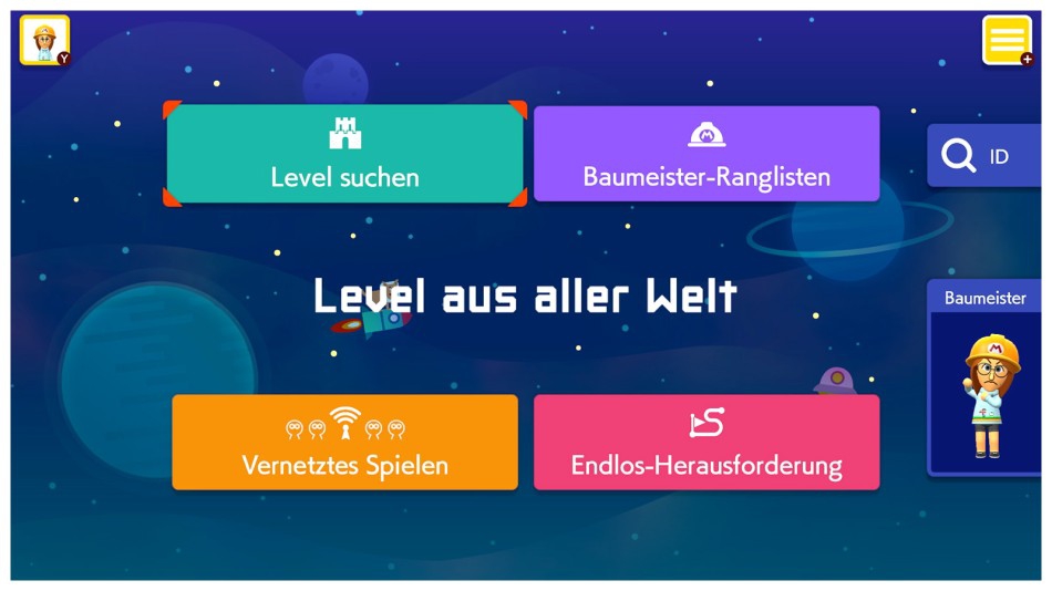 Wie es sich für einen würdigen Nachfolger gehört, kann man – Nintendo Switch Online natürlich vorausgesetzt – auch hier wieder eigene Kreationen hoch-, sowie die anderer Spieler herunterladen. Abgeänderte Versionen von heruntergeladenen Stages dürft ihr allerdings nur für euch selbst bearbeiten und untersuchen oder spielen, da sonst einfach zu viele Kopien im Umlauf wären. Auch darf natürlich kein unschaffbarer Schrott veröffentlicht werden. Bevor ein Kurs nämlich auf die Spielerschaft losgelassen wird, muss man selbst einmal ins Ziel gelangen. Das alles führt dazu, dass eine ziemlich coole Auswahl schon so kurz nach Launch verfügbar ist. Die kann man nun nicht mehr in der 100-Mario-Herausforderung angehen, sondern in einem etwas abgewandelten Endlos-Modus in den Kategorien Leicht, Mittel, Schwer und Sehr schwer. In letzterem stößt man dann vor allem auf alljene Levels, die nur von einem sehr geringen Prozentsatz aller Probespieler geschafft werden, wozu auch die fiesen Kaizo-Kreationen zählen. Es ist also für jeden was dabei! In besagtem Endlos-Modus spielt man dann Level für Level und steigt so immer weiter in der globalen Rangliste auf. Um sich nicht unnötig gedrängt zu fühlen, darf man zudem jederzeit seine Serie speichern und pausieren, oder ganz besonders fiese Welten überspringen. Warum man die beliebte 100-Mario-Challenge jedoch mit diesem Modus ersetzt hat, ist mir ein Rätsel. Beides parallel wäre nun auch kein Weltuntergang gewesen. Davon ab darf man wie auch im ersten Mario Maker wieder fleißig kommentieren, Herzchen - und dieses Mal sogar „Buhs“ vergeben – das mit den Dislikes hat sogar Facebook sich bisher nicht getraut. Baumeister und Welten findet man entweder zufällig und kann diese favorisieren, oder man sucht gezielt nach der jeweiligen ID. Etwas enttäuschend: Nach dem Namen eines Levels oder Erbauers kann man leider immer noch nicht direkt suchen, was etwas steinzeitlich wirkt.