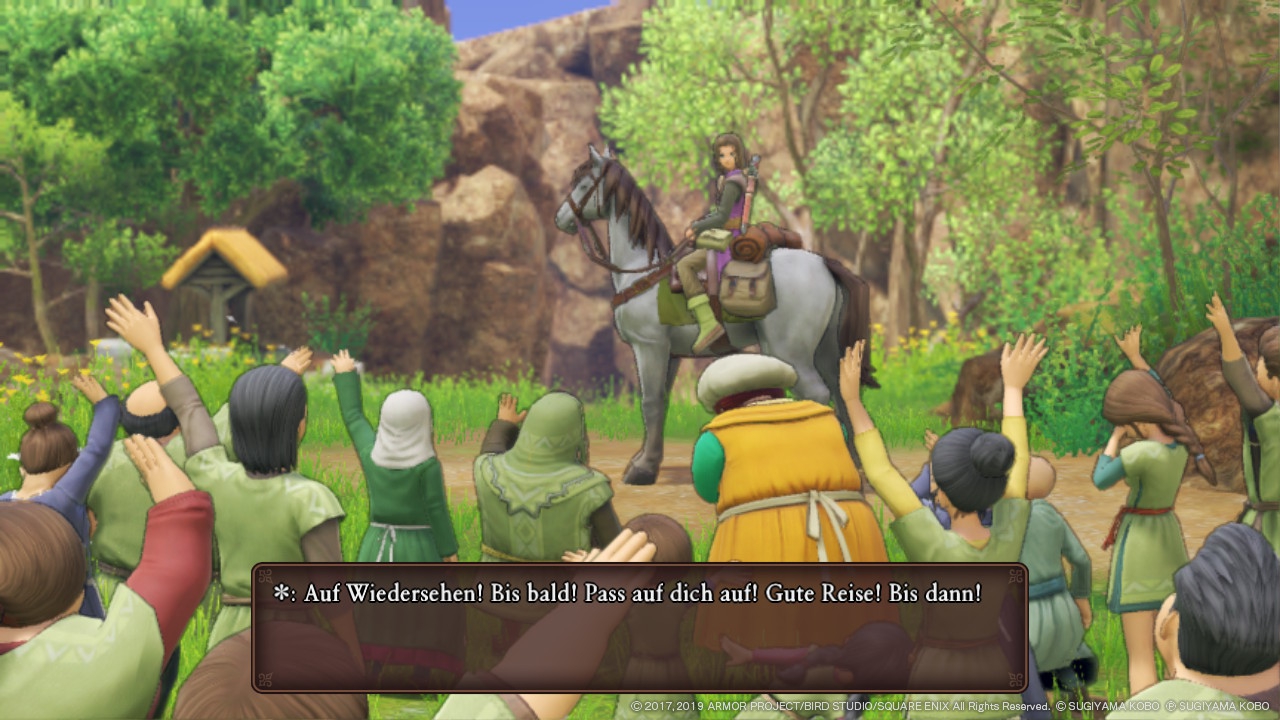 Wie für traditionelle Rollenspiele üblich, beginnt eure Reise eigentlich recht friedlich. Euer frei benennbarer Charakter erfährt am Tag des Erwachsenwerdens von seiner Adoptivmutter, dass er in Wirklichkeit der legendäre Lichtbringer sei und sich nun beim König der örtlichen Hauptstadt melden soll. Leider läuft hierbei nichts wie gedacht: Als Spross der Finsternis, der die Wiedergeburt des Schattenfürsten einläuten soll, verteufelt, befindet ihr euch kurz darauf mit eurem im Knast angelachten Kameraden Erik auf der Flucht und nun ist guter Rat teuer. Immerhin ist euer neuer Begleiter nicht auf den Kopf gefallen und hat sogleich ein paar Vorschläge parat – sofern ihr ihm bei einer Kleinigkeit aushelft. Die umfangreiche Story schneidet dabei zweifelsfrei eine ganze Palette an genretypischen Klischees an, die erfahrene Spieler meilenweit kommen sehen, doch die Verpackung macht den Unterschied aus. Auf eurer Reise geht ihr nämlich nicht nur eurem jeweiligen Hauptziel nach, sondern erlebt auch Szenen aus dem Leben der Fantasy-Welt. Zwar mögen diese Pflicht-Ablenkungen nicht immer direkt etwas mit dem großen Ganzen zu tun haben, doch lassen sie einen noch tiefer ins Erlebnis eintauchen. Unterm Strich spinnt Dragon Quest XI somit ein durch und durch unterhaltsames Garn, welches durch seine sympathischen Figuren, verspielten deutschen Texte und auch die gelegentliche Überraschung zu überzeugen weiß. Und wer etwas näher am Wasser gebaut ist, wird hier auch den ein oder anderen sprichwörtlichen Schlag in die Magengrube verspüren.