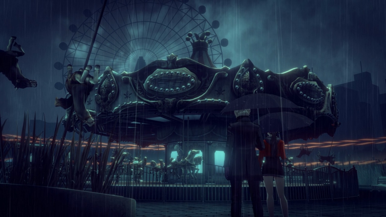 Alles beginnt mit einem Mord. Ihr spielt den Ermittler Kaname Date („Dah-Teh“ gesprochen, nicht wie das englische Wort für Verabredungen), der am Fundort der Leiche – das Karussell eines heruntergekommenen Vergnügungsparks – eintrifft und nun nach Hinweisen zu suchen hat. Das Opfer? Shoko Nadami, die Ex-Frau von Dates Freund Renju Okiura, der auch noch aus unerfindlichen Gründen das linke Auge entnommen wurde. Nach klassischer Adventure-Manier stellt man nun also die Umgebung auf den Kopf: Wahlweise per Touchscreen oder mit dem Analogstick wird das Areal abgefahren, um nach interagierbaren Objekten zu suchen. Dabei gibt es auch äußerst viel unnützes Zeug, wofür Date entweder eine knappe Beschreibung oder gar einen schnippischen Kommentar auf Lager hat. Schon in dieser ersten Szene wird jedoch klar, dass sich das genaue Untersuchen der Umgebung zumindest aus Unterhaltungssicht lohnt: Die kleinen Sticheleien zwischen Date und seinen Begleitern, die streckenweise immer wieder zur Seite stehen, verleihen den Figuren Persönlichkeit. Außerdem gibt es auch diverse urkomische Gespräche mit anderen Charakteren, die im Prinzip der reinen Belustigung dienen. Beispielsweise könnt ihr direkt als erste Aktion einen hiesigen Ermittler der Forensik-Abteilung nach seinem Namen fragen – immer und immer wieder, während der erst noch freundlich und fröhliche Forensiker langsam aber sicher die Geduld verliert. Wer schnurstracks durch das Abenteuer rennen möchte, kann natürlich auch in vielen Fällen einfach das Gespräch mit den örtlichen Personen suchen, dort die entscheidenden Dialogoptionen durchgehen und direkt zum nächsten Abschnitt springen. Nur verpasst man auf diese Weise viele unterhaltsame Details.