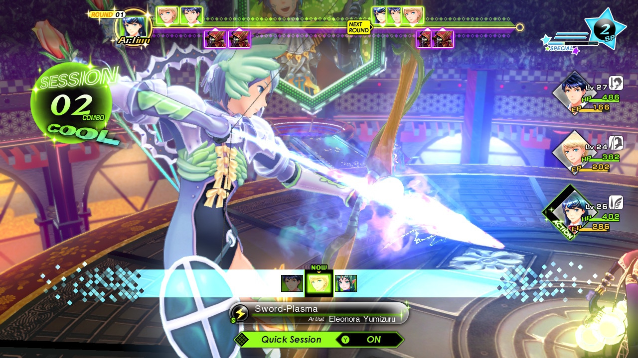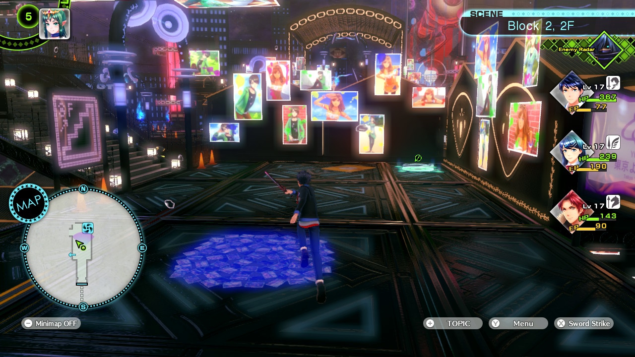 Was hingegen positiv unverändert blieb, ist der allgemein einmalige Stil von Tokyo Mirage Sessions. Das eigentlich recht simpel gestaltete Tokio erstrahlt in teils grellen Farben, was auch den farbenfrohen Silhouetten von unwichtigen NPCs zu verdanken ist. Die Dungeons wiederum zeigen sich von ihrer kreativen Seite und bieten euch teils bizarre Abwandlungen moderner Einrichtungen. Speziell die Kämpfe werden dann als große Bühnenshow präsentiert, bei der eure Truppe vor einem tosenden Publikum effektgewaltig die mörderische Mirage-Schar in die Knie zwingt. Durch das Effektfeuerwerk wird es praktisch nie langweilig, dem Spektakel beizuwohnen. Gerade die variantenreichen Spezialauftritte – also besonders mächtige Attacken – sowie die Improviations- und Duo-Attacken können sich richtig sehen lassen! Wie es sich für ein Spiel mit Fokus auf die Entertainment- und Musik-Industrie gehört, geht auch der Soundtrack direkt ins Ohr. Das Standard-Kampfthema verfügt über einen mitreißenden Beat, die Musikvideos sind stimmig komponiert und auch die Musikstücke der Dungeons gehen direkt ins Ohr. Teilweise vielleicht sogar ein wenig zu sehr, wo mir gewisse Melodien schon seit meiner Spielzeit auf der Wii U immer noch im Kopf herumspuken. Schade nur, dass die Lautstärke unter Standard-Einstellungen ungewöhnlich niedrig ausfällt und für die Anime-Zwischensequenzen überhaupt nicht justiert werden kann. Will man die Audio-Kulisse aus den Lautsprechern der Switch genießen, muss man das Gerät beinahe komplett aufdrehen. Was hingegen bei all den erfreulicheren Elementen fast schon wie eine Randerscheinung wirkt, aber dennoch nicht vergessen werden sollte: Die Ladezeiten der Switch-Version wurden im Vergleich zum Wii U-Original drastisch reduziert. Kämpfe werden praktisch sofort geladen und auch Gebietsübergänge laufen bedeutend flotter. So muss das sein!