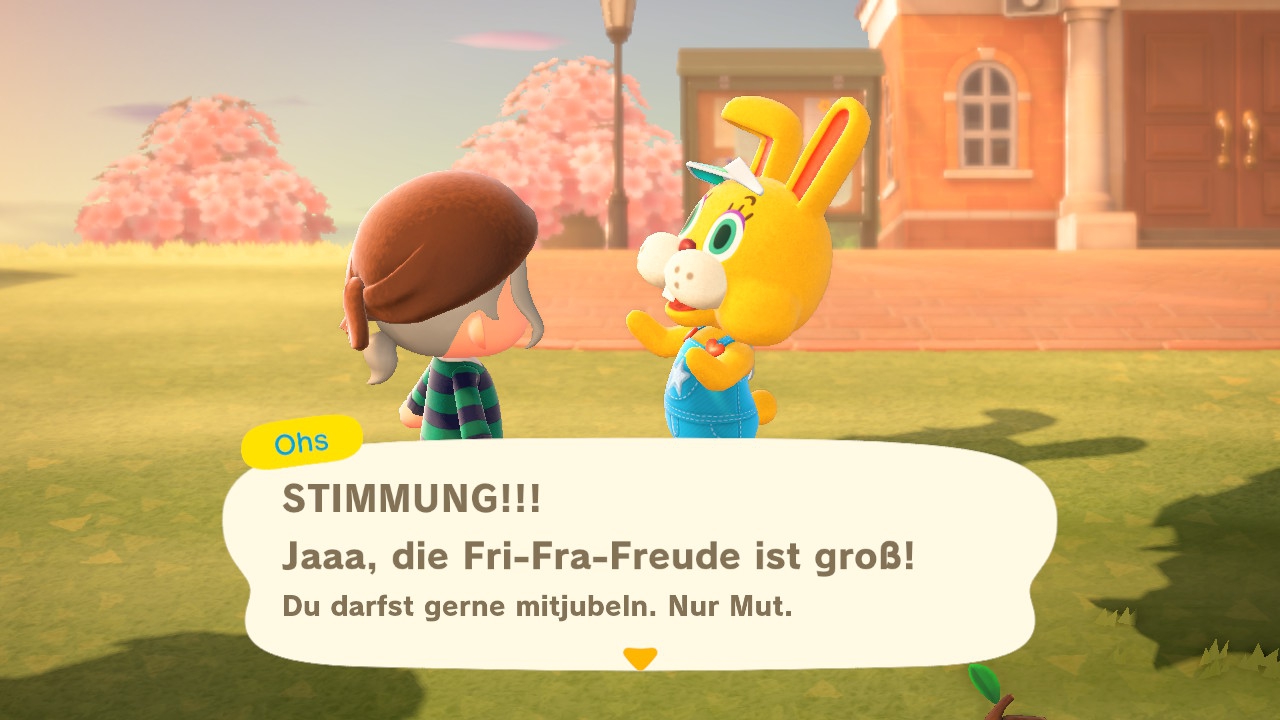 Bei Besuchsflügen gibt es übrigens eine eiserne Regel: Nichts wird ohne explizite Erlaubnis kaputtgemacht! Äxte und Schaufeln lassen sich erst mit einer Genehmigung vom lokalen Inselsprecher nutzen, indem er und sein Besucher „Beste Freunde“ werden. Dies funktioniert komplett über eine NookPhone-App, die das Flugpersonal an Online-Reisende verteilt – allerdings auch nur an die, die sich unter Freunde begeben. Und explizit online verreisen. Weder bei lokalen Partien – wo die Werkzeugbeschränkungen übrigens nicht gelten – noch bei Dodo-Code™-Ausflügen wird die App ausgestellt. Das verwirrte mich als Neuling enorm, zumal diese spezielle Freundesliste auch genutzt wird, um Post an Bekannte von anderen Inseln zu schicken. Warum die App nicht schlichtweg von Nook vorinstalliert wurde, entzieht sich meinem Verständnis.