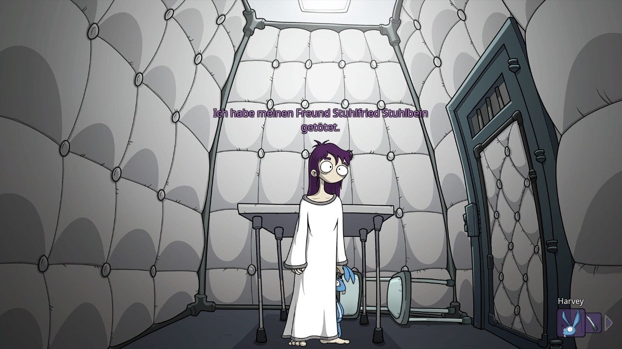 Die Ausgangslage ist schnell erklärt: Hauptfigur Edna Konrad befindet sich in einer Irrenanstalt und wird dort natürlich völlig zu Unrecht festgehalten. Schließlich ist sie bei bester geistiger Gesundheit, was ihr sprechender Stoffhase Harvey auch bezeugen kann. Doch die Flucht ist selbstredend alles andere als einfach, vor allem weil der vom fiesen Psychiater Dr. Marcel geleitete Komplex nicht nur über diverses Wachpersonal verfügt, sondern auch nach außen hin gut abgeriegelt ist. Zudem kann sich Edna nur geringfügig an ihre Vergangenheit erinnern und möchte dieser auch noch auf den Grund gehen. Ein mehr als ausreichender Anlass dafür, den Komplex gehörig auf den Kopf zu stellen und sich nebenbei vielleicht auch mit diversen merkwürdigen Gestalten in den Hallen und Räumen anzufreunden.