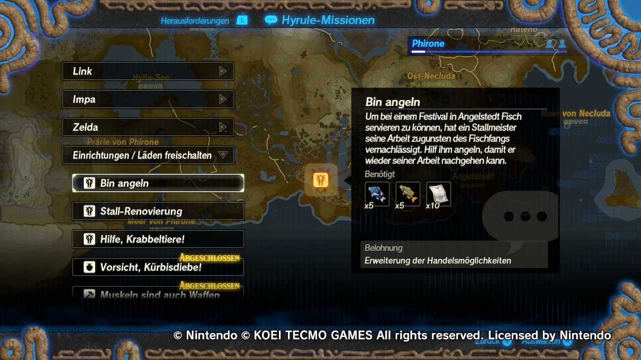 Von der offenen Spielwelt von Breath of the Wild bleibt logischerweise – und glücklicherweise, wenn man sich Dynasty Warriors 9 anschaut – hier nicht viel übrig. Stattdessen hangelt man sich schlichtweg von Mission zu Mission in reguläre, in sich geschlossene Level, die entweder über eine Karte von Hyrule oder ein Auswahl-Menü ausgewählt werden. Besagte Karte wird dabei im Spielverlauf übrigens ziemlich unübersichtlicht: Nicht nur große Schlüsselschlachten finden sich hier, sondern auch die zahlreichen Nebenmissionen sowie jede einzelne als Lieferquest getarnte Upgrade-Möglichkeit oder Shop-Erweiterung wird mit einem Marker auf der Landkarte aufgezeigt. Da jeder abgeschlossene Handlungsabschnitt und zusätzlicher Charakter gerne mal vier oder mehr solcher Punkte ergänzt, könnt ihr euch sicherlich ausmalen, wie zugeschüttet das Bild im Endgame wirkt. Immerhin gibt es für jede Kategorie – also Geschäfte, Nebenaufträge, Lieferungen und Story-Level – jeweils eine eigene übersichtliche Liste, durch die beispielsweise das gezielte Heraussuchen bestimmter Kämpfer-Aufwertungen bedeutend erleichtert wird. Besser noch: Wollt ihr eine bestimmte Sammelaufgabe erfüllen, könnt ihr sie auf eine freischaltbare Merkliste setzen und euch so auf der Karte anzeigen lassen, welche Missionen die benötigten Materialien beherbergen. Praktisch, wo es doch manch Gegenstände nur in ganz wenigen Schlachten gibt.