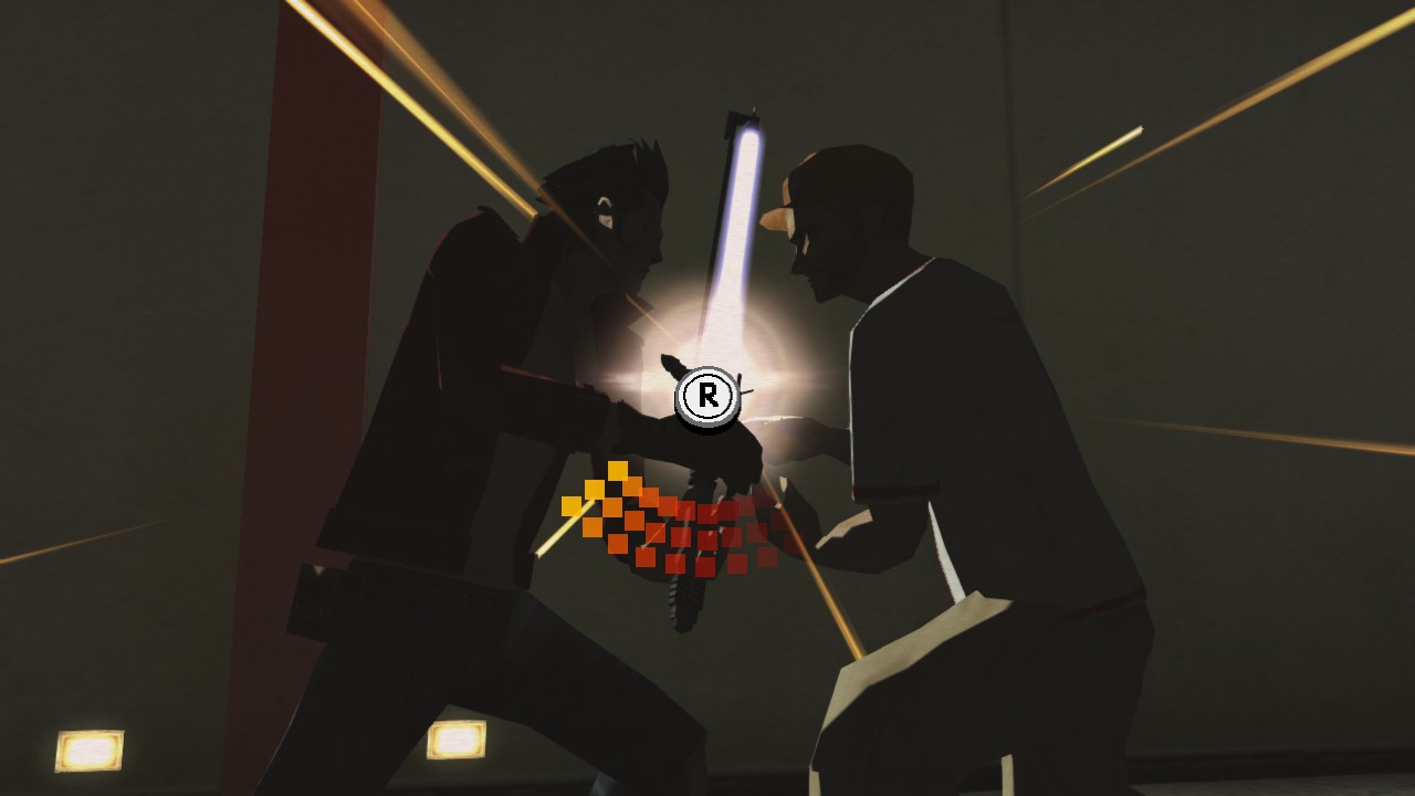Die eigentlichen Level vor den Bossen fahren dabei leider ein eher gewöhnliches Programm ab, machen durch ihr eingängiges Design aber dennoch Laune. Im Prinzip müsst ihr auf eurem Weg durch die Villen, Stadien-Korridore und anderen Einrichtungen einfach alles umlegen, was nicht bei Drei auf den Bäumen ist. Die anstürmenden Möchtegern-Killer werden zu diesem Zweck mit der ZL-Taste ins Visier genommen und anschließend mit den Aktionstasten malträtiert. Die Kombos hängen hier von eurem ausgerüsteten Beam Katana ab, von denen sich abseits der Aufträge eine kleine Auswahl erwerben lässt – das sorgt für Abwechslung auf eurer Reise zur Ranglistenspitze. Schön dabei: Sowohl die originale Wii-Konfiguration, bei der ihr durch Neigung der rechten Controller-Einheit die Schlaghöhe bestimmt, als auch ein gewöhnliches Controller-Setup, das in der PS3-Portierung und im Nachfolger zum Einsatz kam, sind mit an Bord. Schütteleinlagen, wie sie beispielsweise beim Akkuladen des Beam Katanas auftreten, werden beim traditionellen Schema dann schlichtweg auf die Analogsticks gesetzt, während die Angriffsaktionen auf jeweils zwei Tasten aufgeteilt sind. Das funktioniert, mir persönlich gefallen jedoch damals wie heute die Motion-Control-Finisher bedeutend besser – sie fühlen sich für mich einfach besser an.