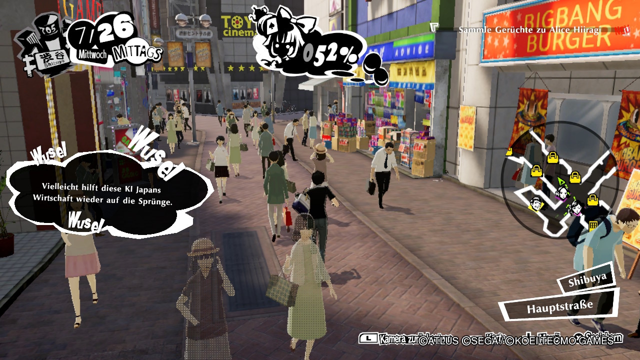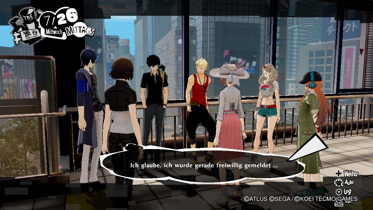 Es warten also allerhand Aufgaben auf die berühmten Phantomdiebe! Die rund 30 bis 40 Stunden lange Geschichte schreitet dabei in umfassenden Dialogsequenzen voran, die auch locker aus dem Vorgänger hätten stammen können. Leider erinnern auch einige Plotpunkte dezent an besagtes rundenbasiertes Rollenspiel, werden dafür aber zumindest interessant abgewandelt. Erorm vermisst habe ich hingegen bedeutende Entwicklungen seitens der Hauptcharaktere. Lediglich die neu eingeführten Figuren werden genauer beleuchtet – schade, aber auf gewisse Weise natürlich auch verständlich. Die Phantomdiebe selbst dürfen dabei in gelegentlichen Ruhemomenten zumindest einige Freizeitaktivitäten wie etwa Festivals nachholen, die ihnen im Persona 5 verwehrt blieben. Für spoilersensitive Naturen interessant zu wissen: Strikers macht kein Geheimnis um die Ereignisse seines Vorgängers und spricht diese gelegentlich auch an. Tatsächlich knüpft das Spiel sogar an die erweiterte Neuauflage Persona 5 Royal an. Da dieser Umstand jedoch lediglich in wenigen Dialogzeilen angedeutet wird, habt ihr in dieser Hinsicht zumindest keine Spoiler zu befürchten, wenn ihr nur die Standard-Ausgabe kennen solltet.