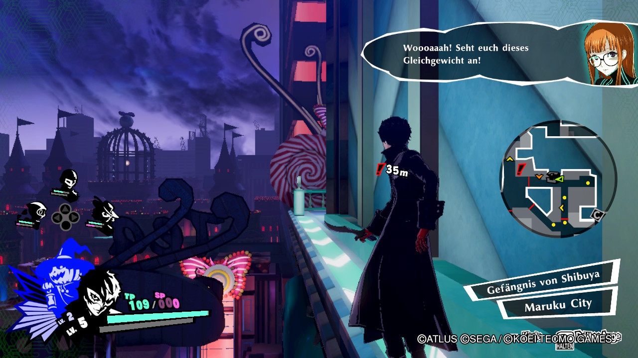 Um die Monarchen in die Schranken zu weisen, müssen Joker und seine Gang die verwinkelten Gefängnisse auf den Kopf stellen. So bieder, wie der Name es anmutet, geben sich die Areale dabei übrigens nicht: Das kognitive Shibuya tritt beispielsweise als Neonlichter-Wunderland auf, während eine andere Haltestelle allerlei imposante Eisstrukturen bestaunt werden dürfen. Die Wege durch die Dungeons sind dabei nichtsdestotrotz linear strukturiert und fest vorgegeben. So wollen etwa in Shibuya erst Suchscheinwerfer ausgeschaltet werden, die ihre Energie aus verstreuten Türmen beziehen. Im Prinzip läuft also alles so, wie man es von einem klassischen Rollenspiel japanischer Bauart her kennt. Leider erwarten euch gerade zu Beginn gefühlt alle paar Schritte Unterbrechungen in Form kurzer Dialogszenen, die den Erkundungsfluss deutlich stören. In der zweiten Hälfte legt sich das dankenswerterweise, bis dahin müsst ihr jedoch einiges an Geduld mitbringen, wenn ihr hier ein Action-Erlebnis nach Rezept von Omega-Force erwartet.