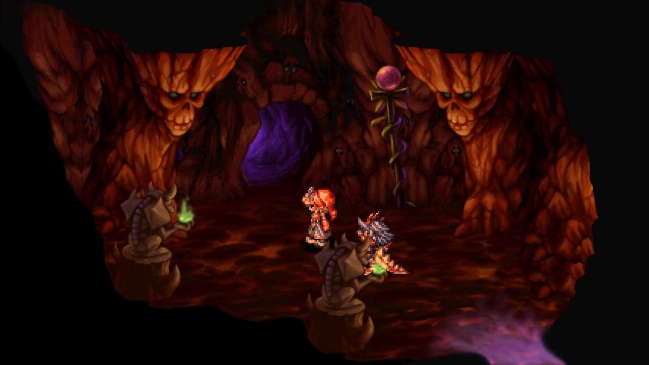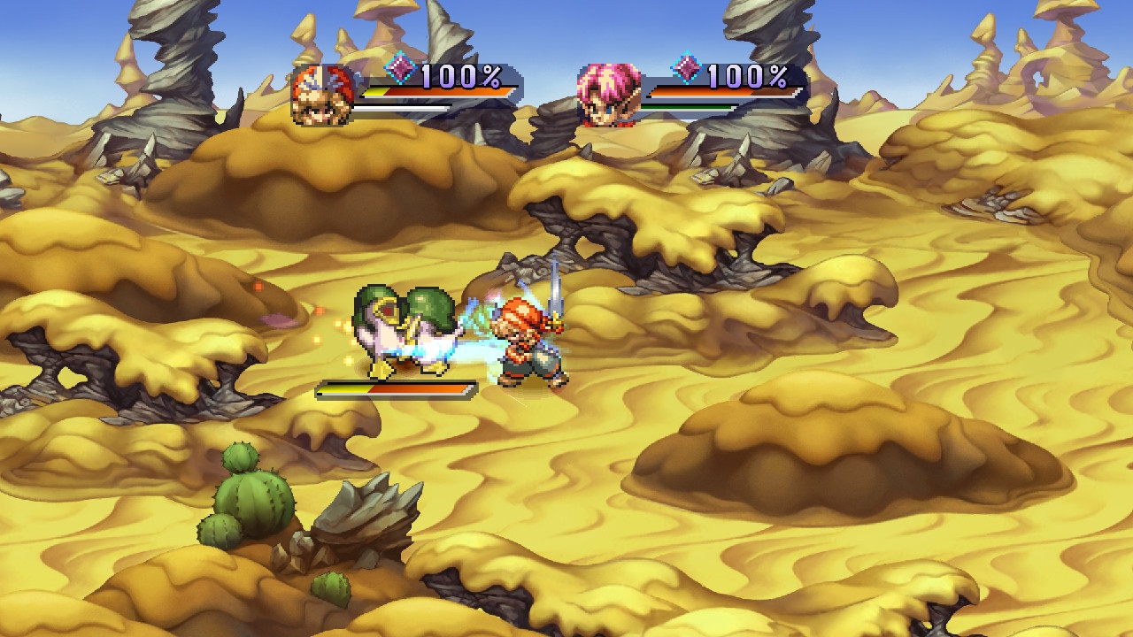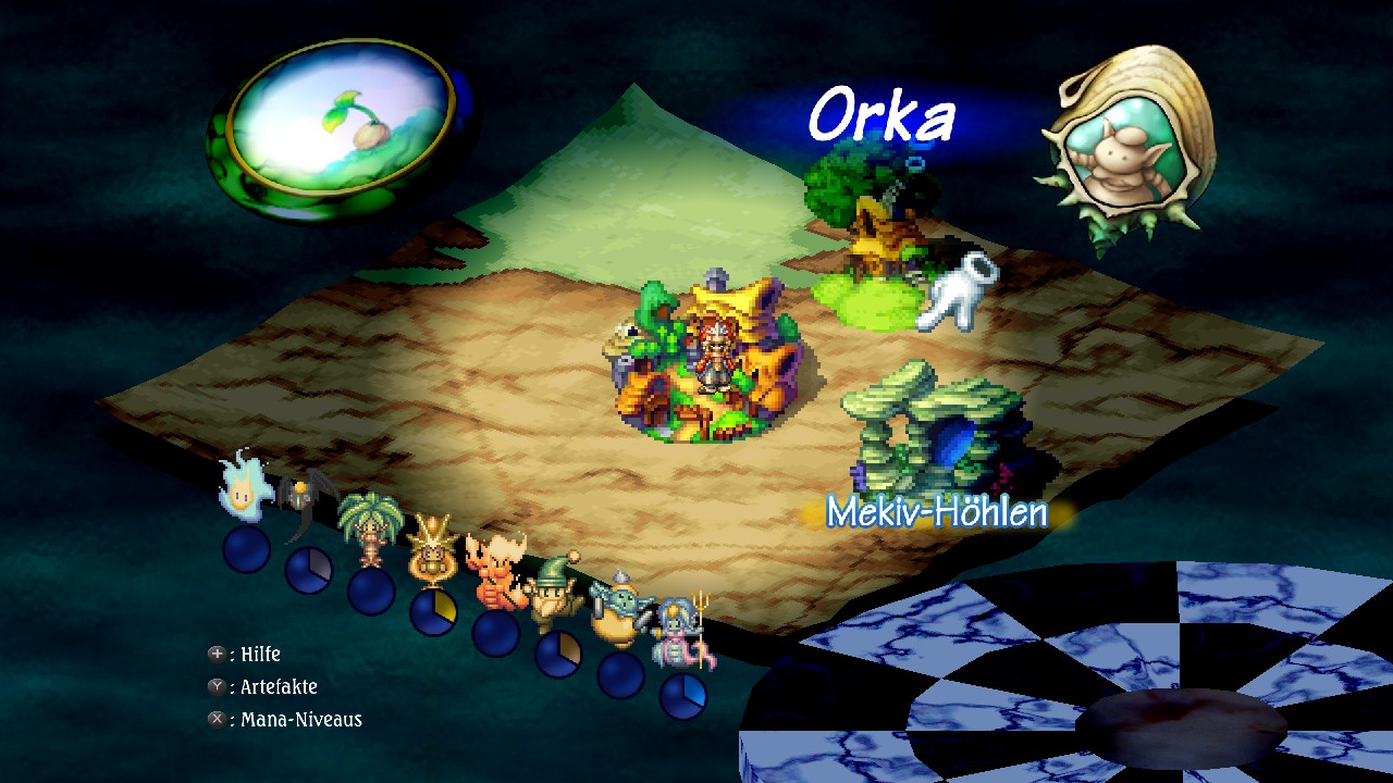 Das PS1-Original bestach bereits durch seine malerischen Hintergründe. Entsprechend erfreulich ist, dass die HD-Überarbeitungen sich immer noch mehr als sehen lassen können! Klar wirkt es zunächst befremdlich, dass in den handgezeichnet wirkenden Umgebungen Pixelfiguren herumlaufen, doch an diesen Kontrast gewöhnte ich mich schnell. Das liegt zum Teil daran, dass die Charaktere auch so durch ihren Detailreichtum sowie zahlreiche liebevolle und verspielte Animationen auffallen. Legend of Mana entwickelt durch diesen Mix einen eigenen Charme, der in meinen Augen funktioniert. Trotzdem hätte ich mir speziell in den Umgebungen etwas Hilfe bezüglich der Gebietsübergänge gewünscht. Es ist nämlich nicht immer klar, über welche Pfade ihr tatsächlich in andere Areale gelangen könnt und was schlichtweg Dekoration ist. Eine Karte hätte womöglich auch geholfen, denn eine solche wird selbst im Remaster schmerzlich vermisst.