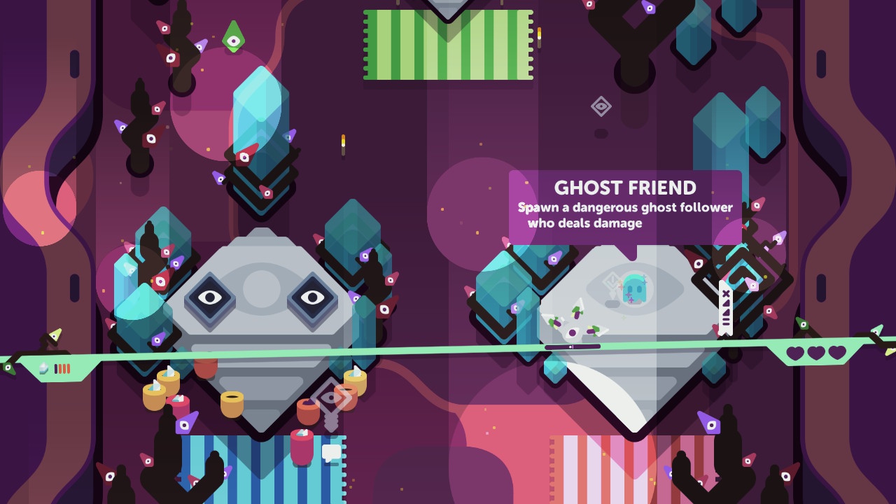 Für einen kleinen Chancenausgleich sorgen die besonderen Fähigkeiten des Helden. Er kann nämlich verschiedene Formen annehmen, die an festgelegten Pflanzpunkten unterschiedlich wirken. Standardmäßig könnt ihr etwa Checkpoints anlegen, für Gegner schmerzhafte Dornen um euch kreiseln lassen, eure Lebensenergie wieder auffüllen oder Kristalle generieren – bis auf letztere Fähigkeit müssen die jedoch allesamt mit eben jenen Kristallen gespeist werden. Hin und wieder stolpert man zudem über eine besondere Höhle, die ein weiteres Power-Up beheimaten kann. Diese sind teils nicht von schlechten Eltern und angesichts des hohen Schwierigkeitsgrads bitter nötig! Was nämlich sehr schnell auffällt: TumbleSeed kennt keine Gnade und fordert quasi von Spielbeginn an bereits reichlich Geschick – und dabei handelt es sich dabei nur um die erste Etappe! Mit der zweiten setzt der Härtegrad zu einem weiteren Sprung an, ohne reichlich Übung und gute Kontrolle über das Rollverhalten seht ihr schnell kein Land mehr. Glücklicherweise ist die Steuerung sehr präzise und erlaubt es euch sogar, in den Optionen die Deadzone der Analogsticks zu kalibrieren.