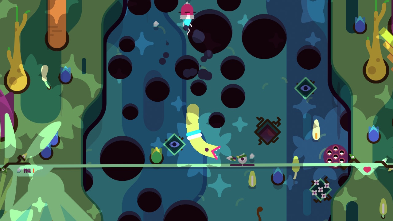 Was zudem den Frust auf Dauer deutlich senkt und als guter Motivator dient, sind die Quests von eurem Dorfoberhaupt. Die simplen Aufgaben dienen dabei als eine Mischung aus Herausforderung und Tutorial, haben aber den erfreulichen Nebeneffekt, dass sie Teleporter zu den jeweils nächsten Etappen freischalten. Für den reinen Durchspieler ein Segen, allerdings wird auf diese Weise eure Bestleistung nicht für die Online-Ranglisten festgehalten – da geht es nämlich darum, wie weit die Spieler vom Fuße des Berges aus gekommen sind. Tägliche Herausforderungen mit festen Leaderboards sorgen zudem dafür, dass ihr euch nicht unbedingt an den Altmeistern auf dem Treppchen die Zähne ausbeißen müsst. Das macht TumbleSeed zu einer insgesamt sehr anspornenden Erfahrung, da man sich natürlich stetig bessern möchte.