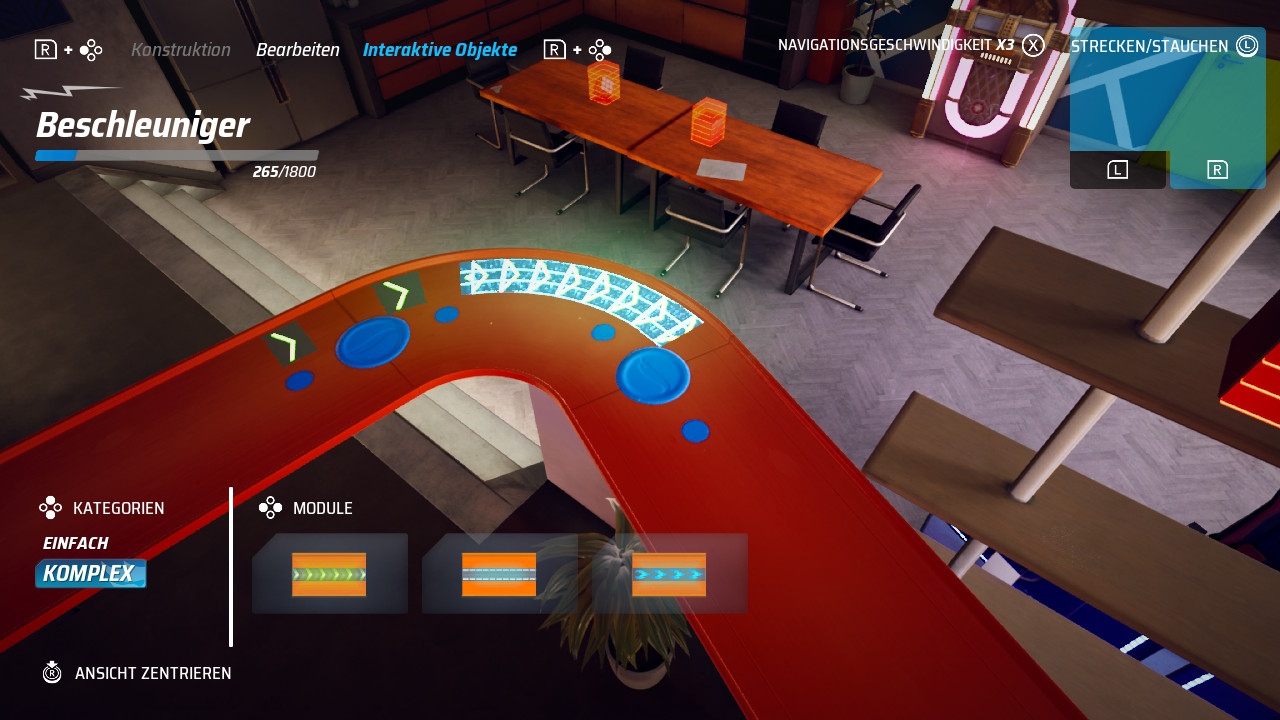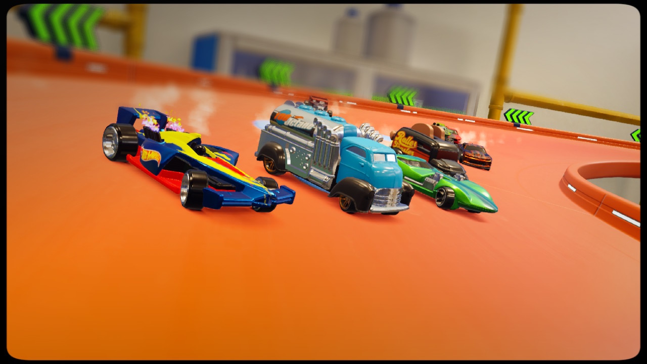 Gleich zu Beginn im Tutorial-Rennen bekommt man schnell ein Gefühl für die Steuerung und das Fahrverhalten, welches erfreulich responsiv ist und etwas beim Driften unterstützt. Trotzdem lassen sich die eigenen Fahrkünste in weiteren Rennen verfeinern, denn obwohl das Spiel einen im Drift durch die Kurve geleitet, ist doch noch ein gewisser Anspruch da um auf der Strecke zu bleiben, besonders auf den späteren Kursen, auf denen Fahrabschnitte ohne Banden existieren. Die Strecken selbst sind natürlich aus orangefarbenen Hot Wheels-Teilen konstruiert und in Räumlichkeiten wie unter anderem ein Keller oder eine Universität untergebracht. Die Layouts sind selten langweilig und geschmückt mit Kurven, Abzweigungen, Boostern, Loopings, magnetisierte Antigravitationspassagen und viele sonstige Hindernisse, die teilweise aber auch nur mit Glück überwunden werden können. Hin und wieder stößt man auf ein Bossrennen, welche sich durch ein bestimmtes Gimmick wie Boost-Blocker und Rundenzeiten von zwei Minuten auszeichnen. Als nettes Detail lösen verschiedene Interaktionen auf der Rennstrecke bestimmte Soundeffekte in der Hintergrundmusik aus.