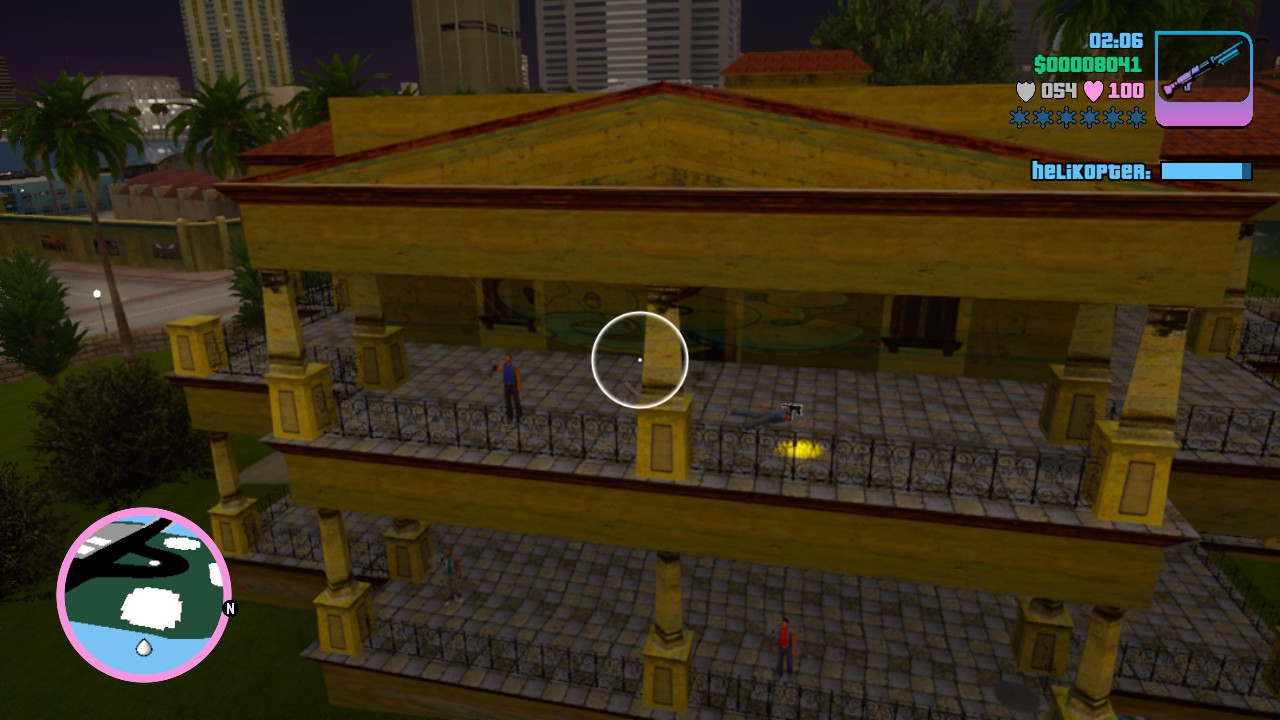 Durch diese kleine Änderung wirken die an sich immer noch weitestgehend kompakten Missionen zudem direkt gehaltvoller. Es macht schon einen Unterschied, ob Tommy wortlos jeden Auftrag hinnimmt oder sich darüber beschwert, dass sein blaues Hawaii-Hemd auf einer noblen Party unter den größten Kriminellen Vice Citys nicht gut ankäme und sich daher neue Klamotten besorgen muss. Auch größere Feuergefechte, wie beispielsweise der Sturm auf die Villa eines Gangsterbosses via Helikopter, gewinnen durch die Wortwechsel zwischen Tommy und seinem Begleiter noch einmal einiges an Stimmung. Davon ab erwartet euch in Vice City jedoch im Prinzip die selbe Gameplay-Schleife wie im Vorgänger, nur eben in einem neuen, dezent größeren Gebiet. Ob ihr Mission für Mission abarbeitet, im Rahmen von Randale-Minigames die Straßen aufmischt, Pizzen ausliefert oder am Strand der Stadt die Seele baumeln lasst, ist euch überlassen. Für mich war Vice City allein der Stimmung halber schon der liebste Serienteil und daran hat sich mit der Neuauflage auch nichts geändert – auch wenn dabei zugegebenermaßen ein gewisses Maß an Nostalgie mitspielt und die veraltete Grundstruktur nach wie vor durchschimmert.