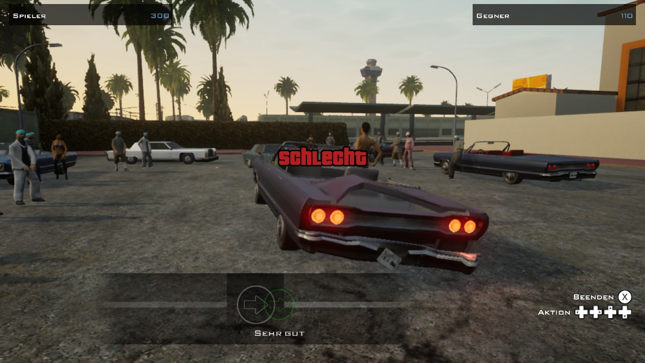 San Andreas ist aber auch in so ziemlich allen anderen Bereichen größer und besser. Der Bundesstaat bietet bedeutend mehr Spielfläche mit abwechslungsreichen Arealen, einer stattlichen Anzahl an Sammelobjekten und Zusatzaufgaben. Selbst an den Hauptmissionen wurde eifrig gefeilt, um sie noch vielfältiger und umfassender zu machen. So mischt ihr zwar noch ganz simpel feindliche Banden vom Auto aus auf oder verfolgt Zielpersonen zu Fuß oder per Fahrzeug, ihr dürft euch allerdings auch beispielsweise an Diebestouren in Eigenheimen versuchen, mit der Hydraulikanlage eines Lowriders imponieren oder im Tanzminigame gaaaanz grob zum Beat der Musik Tasten drücken. Dass da nicht immer alles auf Anhieb klappt, auch weil manch Auftrag womöglich etwas unkonventionell ausfällt, ist selbstverständlich. Immerhin mindert die Definitive Edition hier den Frust: Bieten III und Vice City höchstens zu Auftragsstart einen Checkpoint, sind hier ein oder mehrere mitten im Spielabschnitt keine Seltenheit. Dank der teils absurden Wegstrecken, die im Original zum Missionsneustart getätigt werden mussten, sind diese neuen Kontrollpunkte mehr als willkommen.