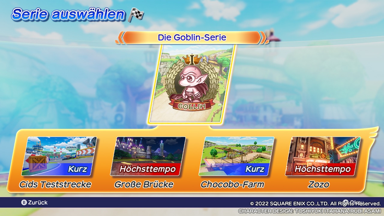 Als weitere Einzelspieler-Modi finden sich noch Zeitrennen, Serienrennen sowie eigens zusammengestellte Meisterschaften im Paket. Erstere beiden liefern euch bei erstmaligem Schlagen von Bestzeiten bzw. Erobern von Goldpokalen mit für den Shop notwendigen Tickets, letzterer Modus dient hingegen zum reinen Spaß an der Freude. Ärgerlich bei den Serienrennen: Die im Stile der Mario Kart-Cups aufgezogenen Wettkämpfe bieten zwar auf dem Papier mit satten zwölf Meisterschaften mit je vier Strecken reichlich Umfang, jedoch mangelt es Chocobo GP eindeutig an Strecken, um diese auch ohne Doppelungen und teils Dreifach-Wiederholungen zu füllen. Es gibt nämlich gerade mal neun Umgebungen, von denen viele immerhin verschiedene Kurskonfigurationen bieten – insgesamt kommt Squares Racer damit auf 21 Strecken. Dass dies weniger als die im Serienrennen durchfahrenen 48 sind, sollte auf der Hand liegen. Dadurch hat praktisch keines der Turniere einen wirklich eigenen Charakter und zwei aufeinanderfolgende im Speziellen überschneiden sich sogar dermaßen stark, dass lediglich eine der vier Strecken mit einem neuen Layout aufwartet, der Rest hingegen völlig identisch ist. Das ist schwach und sorgte zumindest bei mir dafür, dass mich die Serienrennen nicht nur ermüdeten, sondern ich sie nach Einstreichen der einmalig ausgezahlten Tickets mangels weiterer Belohnungen fürs Spielen komplett ignorierte.