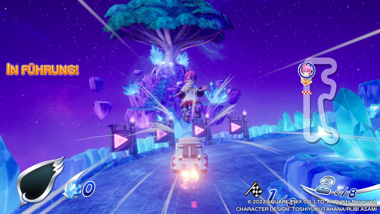 Zu guter Letzt verfügt jede Figur auch noch über eine eigene Spezialfähigkeit. Generell bieten diese in der Regel einen vorübergehenden Temposchub samt Lenkhilfe, dies jedoch mit einigen Extras. Ritter Adelbert Steiner schwingt etwa munter sein Schwert, um vor ihm fahrende Konkurrenten weitflächig aufzuhalten, während Schatzjäger-Mogry Atla sich an den Kristall-Vorräten seiner Mitbewerber bedient. Die für derartige Manöver notwendige Energie muss mit Kristallen oder Tricks aufgefüllt werden. Auch dies sorgt für mehr Tiefgang bei den sonst simpel aussehenden Rennen. Die Kombination aus konstantem Zauberregen und eingestreuten Spezialattacken hat jedoch auch einen Nachteil: Ihr werdet beinahe konstant das Warngeräusch für irgendwelche hinter euch befindlichen Projektile oder Attacken zu hören bekommen – und es ist kein angenehmes Geräusch.