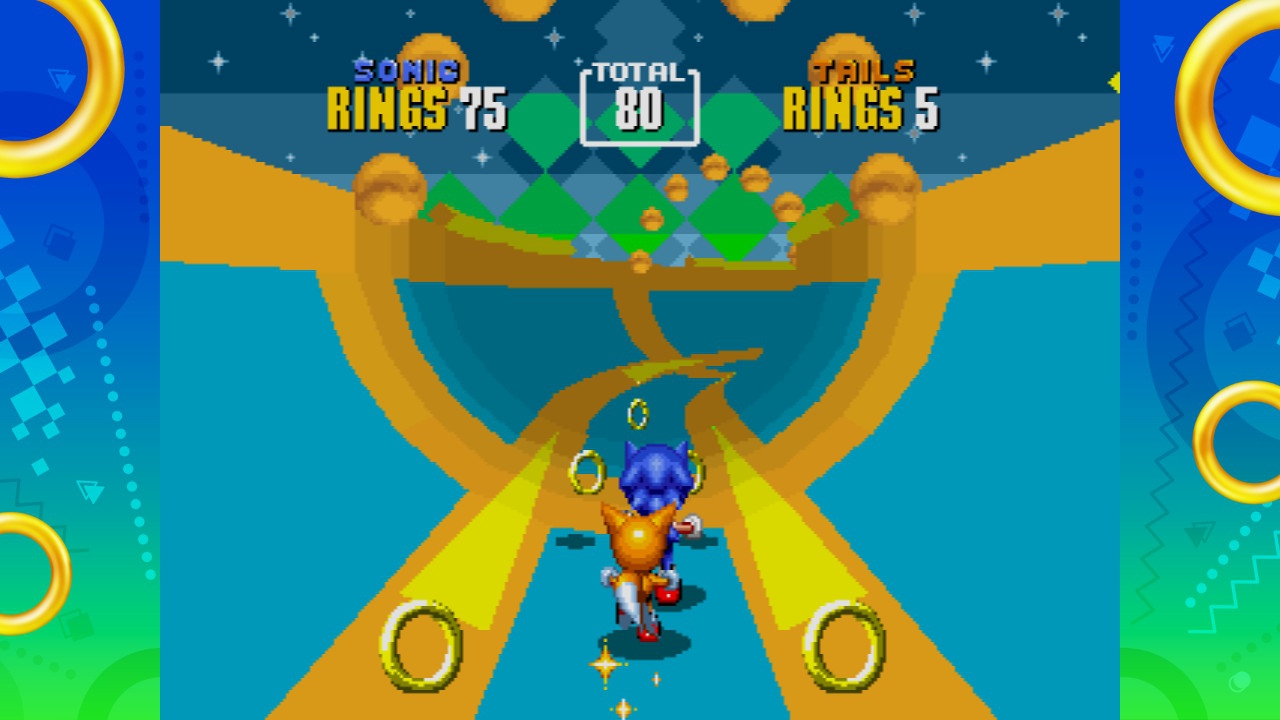 Die vier Spiele mögen vom Grundprinzip her ein ähnliches Programm auffahren, unterscheiden sich stilistisch jedoch merklich – das fällt vor allem im Storymodus auf. Sonic 1 und Sonic CD sind vergleichsweise langsamer strukturierte Spiele und legen viel Wert auf behutsame Sprungpassagen. Sonic CD im Speziellen erfordert für das beste Ende sogar einen gesunden Entdeckergeist, denn für dieses müsst ihr in den Vergangenheitsformen der Level versteckte Teleportermaschinen des Gegenspielers Dr. Robotnik zerstören. Sonic 2 legt mehr Fokus auf temporeiche Passagen und Sonic 3 & Knuckles vermengt das schnelle Spielprinzip des Vorgängers mit nicht ganz so ausufernden Erkundungstouren. Langeweile kommt hier jedenfalls nicht so schnell auf! Selbst die Special Stages, in denen ihr die für das perfekte Ende notwendigen Chaos Emeralds bzw. Time Stones erbeutet, sind in jedem Spiel anders. Bei Sonic 2 sammelt ihr etwa in einem Halfpipe-Parcours ausreichend Ringe, in Sonic CD wollen innerhalb eines kleinen 3D-Gebiets UFOs zerstört werden. Das Minigame aus Sonic 3 & Knuckles lässt sich sogar ganz losgekoppelt vom Hauptspiel angehen – mit einer deutlich größeren Auswahl an Leveln!