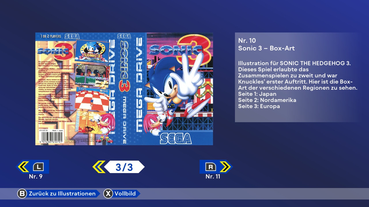 Spielerisch wird also zweifelsfrei einiges geboten. Doch wie gibt sich die technische Seite? Während das Hauptmenü bei mir hin und wieder mit ganz leichten Eingabeverzögerungen Sorgen bereitete, laufen die Spiele selbst dankenswerterweise so rund, wie sie es sollten. Großartige technische Mängel sind mir keine untergekommen, in einem Fall setzte lediglich die Abspannmusik von Sonic 1 aus, weil der automatisch agierende Sonic die Punkteschwelle für ein Extraleben überschritten hatte. Allerdings sind diverse Berichte von ungewöhnlichen Glitches im Umlauf, die sich maßgeblich auf die PC-Version zu beschränken scheinen. Dass ich nur Glück hatte, möchte ich nicht ausschließen. Universell ärgerlich sind hingegen die lizenzbedingten Änderungen am Soundtrack von Sonic 3 & Knuckles. Diverse Levelmelodien wurden gegen neu eingespielte Remixes ihrer Prototyp-Versionen ausgetauscht, die zwar ordentlich klingen, sich für mich als Kenner der Originalveröffentlichung jedoch irgendwie falsch anfühlen. Aber hey: Besser so als wieder eine Sammlung ohne mein Lieblingsspiel der Sonic-Reihe.