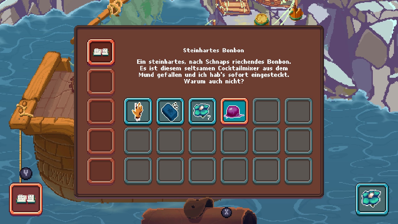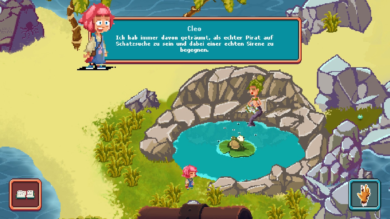 Denn, so viel sollte klar sein, ich kann euch Cleo: A Pirate’s Tale besten Gewissens empfehlen. Klar ist das Adventure selbst für Genreverhältnisse recht kurz, doch in diesen paar Stunden erzählt es eine gut strukturierte Geschichte, die mit Witz, Charme und einer Hand voll interessanter Wendungen auffährt. Auch die Puzzles bereiteten mir viel Freude, finden sich hier doch diverse clever gestellte Aufgaben, bei denen man mit etwas Hirnschmalz (sowie dem richtigen Objekt in der Tasche) zwar recht schnell auf die richtige Lösung kommt, aber sich dennoch wie ein großer Rätselknacker fühlt, wenn alle Teile nach und nach ineinandergreifen. Und das simple wenngleich nicht minder fesselnde Minispiel Kraken Fodder habe ich noch gar nicht erwähnt! Nicht zuletzt kann sich der Titel sehen und hören lassen: Der Pixellook wurde gut umgesetzt und die deutsche Vertonung haucht den Figuren erstklassig Leben ein. Das einzige, was ich bei Cleo: A Pirate’s Tale vermisst habe, wären mehr Interaktionspunkte in den Umgebungen gewesen, einfach um noch mehr atmosphärische Beobachtungen und Beschreibungen zu erhalten. Aber auch so überzeugt der kleine Adventure-Happen zum fairen Preis auf beinahe ganzer Linie.