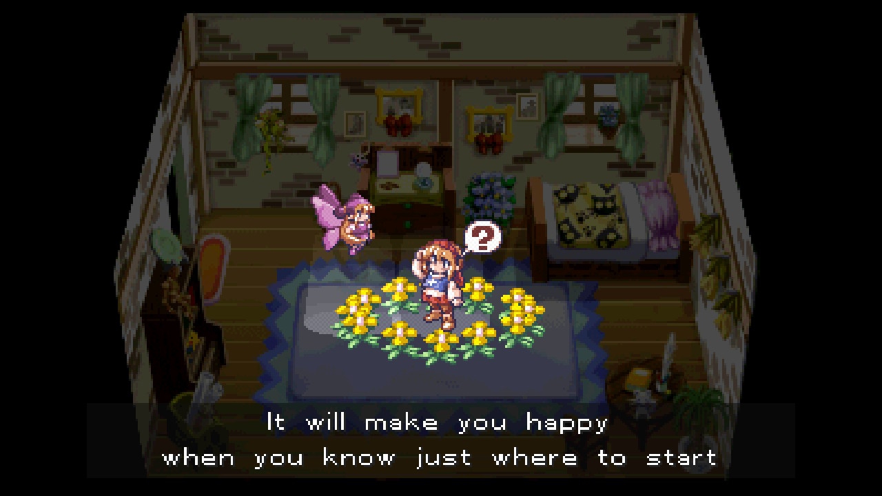 Immerhin werdet ihr in dieser Zeit gut beschäftigt. Cornets Herzensangelegenheit führt euch in alle Ecken von Marl, wo ihr notwendige Aufgaben zur Eroberung des Prinzen erfüllt. Ganz gemäß der RPGs alter Schule müsst ihr dazu in der Regel mit den richtigen Personen sprechen und so Hinweise für das weitere Vorgehen aufspüren. Genauer gesagt schmeißt euch Rhapsody nicht selten ins kalte Wasser und lässt euch fröhlich rumprobieren, was in seltenen Fällen frustrieren kann. Dass ich beispielsweise an einer Stelle das Ende eines Dungeons zweimal aufzusuchen hatte, wird nicht sonderlich deutlich vermittelt. Die zusätzlichen Gruppenmitglieder sowie die dazugehörigen Nebenquests sind häufig sogar noch besser verborgen oder gar verpassbar. Cornet ist nämlich in der Lage, beseelte Marionetten und Puppen aufzulesen und ihnen bei ihren jeweiligen Problemen zu helfen. Wie genau ihr das anstellt, wird euch praktisch nie verraten, bis ihr euch zufälligerweise ins richtige Kämmerlein verirrt. Allein dass hinter manchen Geschichten mehr steckt, als zunächst ersichtlich ist, lässt sich schnell übersehen.