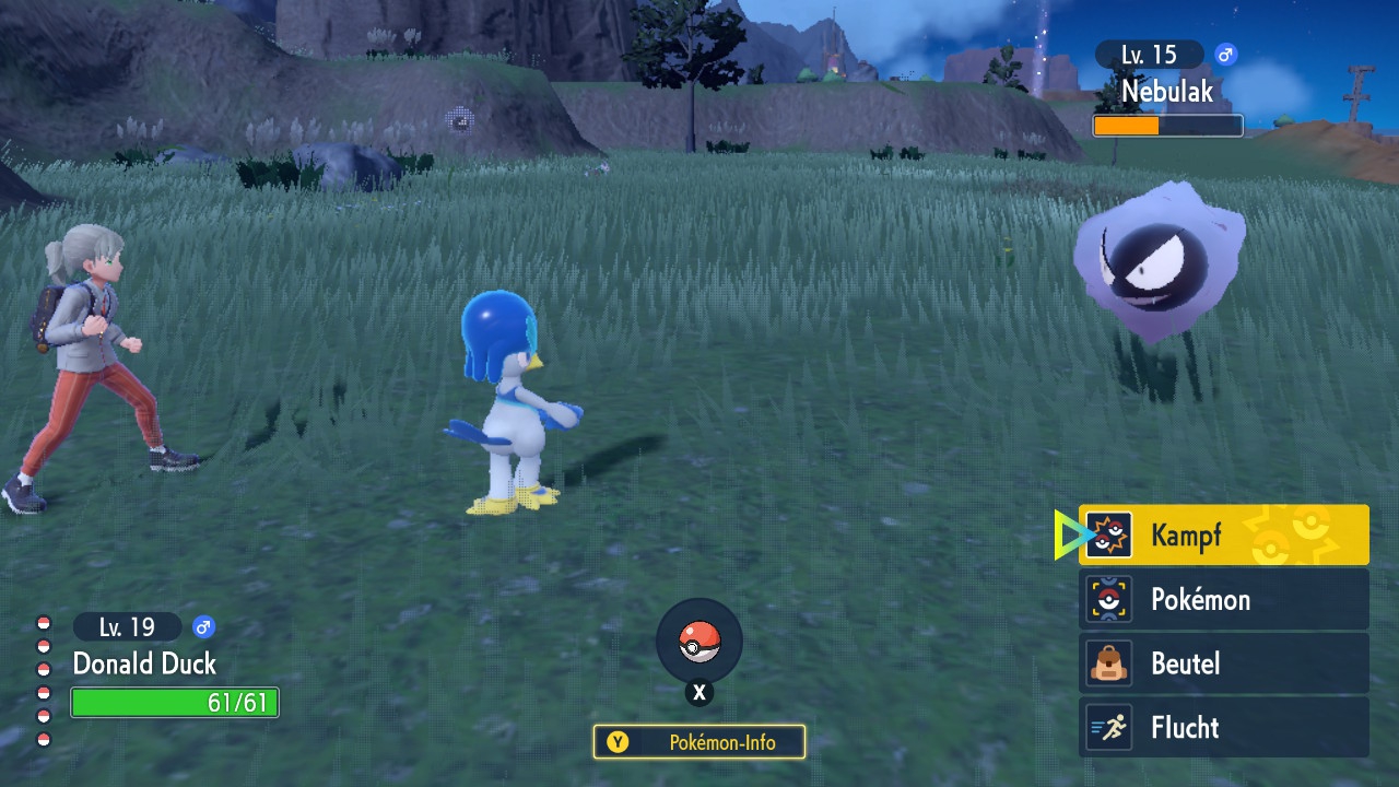 Leider werden all diese positiven Eindrücke durch die häufig auftretenden Grafikfehler geschmälert. Die gröbsten Patzer wie Nachladepausen und Umgebungsneuaufbau beim Pokémon-Fang, unsichtbare Reit-Pokémon oder sich seltsam verrenkende Charaktermodelle sind mir glücklicherweise in meinen rund 22 Stunden Spielzeit erspart geblieben. Doch auch ich konnte manchmal durch unglückliche Kamerapositionierung durch den Boden sehen oder mit dem Menü große Schatten ein- und ausschalten. Einer der kurioseren Fehler: Manchmal tauchen in bestimmten Bereichen wie beispielsweise an Türen oder in der Mitte der Tera-Raid-Arena Pokébälle im Boden auf – manche Leute haben dabei sogar komplett andere Pokémon dekorativ in der Gegend stehen sehen. Bei all den Patzern wundert es nicht, dass selbst manch beabsichtigte Witze wie das sturmbedingte Wegwehen von durch die Luft springenden Pokémon oder die ulkige Laufanimation der Team Star-Feueranführerin Irsa (die bei derartig unpraktischen Stiefeln nicht anders laufen könnte!) wie Fehler wirken. Da sind die stellenweise auftretenden Ruckler, die mir im hauptsächlich gespielten Handheld-Modus untergekommen sind, fast schon das geringste Problem.