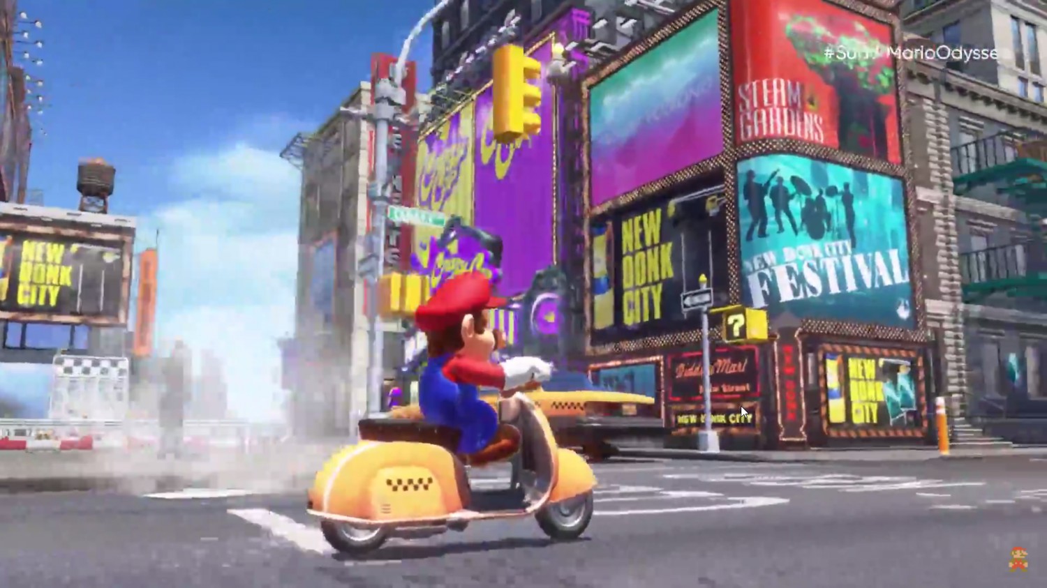 Einen wichtigen Punkt habe ich aber noch kein einziges Mal angesprochen. Natürlich gibt es nicht nur viel zu entdecken, sondern auch zu sammeln. Den Insignien aus Super Mario Sunshine wichen nun den recht ähnlich designten Powermonden. Diese erhält man in verwinkelten Ecken oder nach Erledigung kleiner Aufgaben. Außerdem hat jedes Level 100 Einheiten einer spezifischen Währung. Das alles zu finden dürfte schon einige Zeit beschäftigen, zumal die Gebiete beide recht weitläufig waren. Die Levelwährung kann man übrigens in einem Shop gegen neue Outfits und Hüte für Mario eintauschen, etwa das Bauarbeiter-Outfit aus Super Mario Maker. Ob diese eine Funktion haben, wird aber wohl erst die Vollversion zeigen. Übrigens konnte man nicht nur in Stromleitungen klettern, sondern sogar in Menschen. Auch ist Mario nun nicht mehr ausschließlich per pedes unterwegs, denn auch auf einem Scooter kann man in Odyssey durch die Stadt düsen!