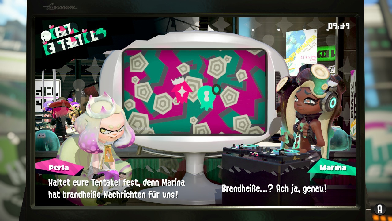 Schade ist jedoch, dass wieder einmal kein schneller Wechsel eurer Ausrüstung möglich ist. Wollt ihr zwischen den Partien mit zufälligen Gegnern eure Kleidung oder Waffen anpassen, müsst ihr aus der momentanen Gruppe aussteigen und über das Lobby-Menü eure Einstellungen vornehmen. Nur private Spiele unter Freunden erlauben es euch, auch ohne Umweg Anpassungen vorzunehmen. Das nervt gerade dann, wenn man alle Zufallseffekte der aktuell getragenen Klamotten freigelegt hat. Die Mode der Inklinge sieht nämlich nicht nur stylisch aus, sondern verfügt über einen Kerneffekt sowie bis zu drei schwächere Unterstützungseffekte, die durch Teilnahme an Online-Kämpfen freigeschaltet werden. Dieser vom Zufall abhängige Prozess wurde übrigens etwas entschärft: So könnt ihr bei der Imbissbude von Shrimpson Getränke erwerben, die die Chance auf bestimmte Effekte erhöhen, oder unliebsame Boni vom Seeigel-Knaben Sid in Fragmente zerlegen lassen und diese später in ein anderes Ausrüstungsstück einbauen – gegen einen beträchtlichen Betrag an in Revierkämpfen verdientem Geld, versteht sich.