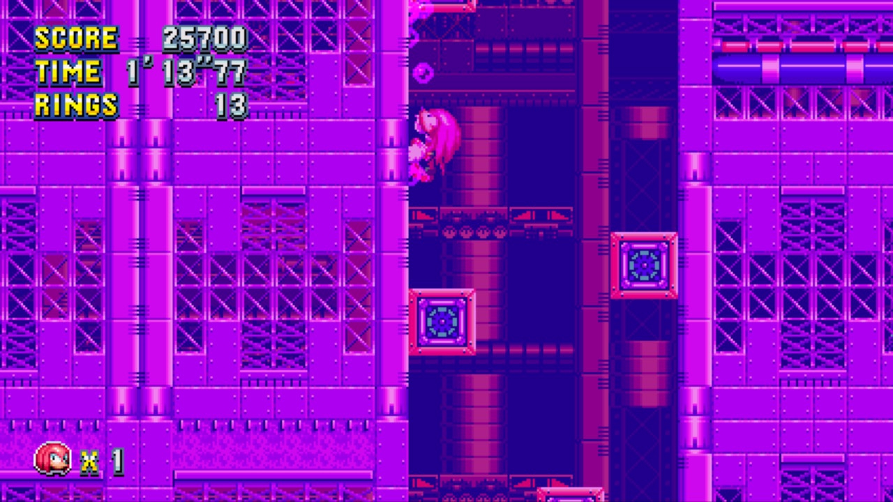Das Leveldesign ist dabei ohne jeden Zweifel gelungen. Die abwechslungsreichen 2D-Stufen erweisen sich als enorm weitläufig und bieten zahlreiche alternative Wege und natürlich auch die ein oder anderen geheimen Ecken, die entweder mit Power-Ups oder Zugängen zu einer Bonus Stage mit Chaos Emerald als Belohnung ausgestattet sind. Gerade die Klunker sind für den vollständigen Spielabschluss unerlässlich und erfordern die Meisterung eines kleinen Rennens in primitiver 3D-Grafik. Diverse Eigenheiten der Welten sorgen dafür, dass euch auf der Tour praktisch nie langweilig wird. So müssen in der zweiten Hälfte der Chemical Plant etwa elastische Substanzen als Trampolin genutzt werden, während ihr in der Press Garden Zone kleine Strecken schon mal als tiefgefrorener Igel-Eisblock durchschlittert. Hin und wieder kam mir ein Level vielleicht einen Tick zu lang vor, handfeste Ermüdungserscheinungen sind jedoch selten. Abgerundet wird jede Stufe durch einen großartigen Bosskampf. Wo die Großgegner-Intermezzos in den meisten Plattformern zu routinierten Simpel-Kämpfen verkommen, hat das Team hinter Sonic Mania alle Register gezogen, um denkwürdige Gefechte auf die Beine zu stellen. Der Überraschung halber möchte ich an dieser Stelle nicht zu viel verraten, aber es sei euch gesagt: Dass es sich beim Boss der Green Hill Zone bereits um den letzten Endgegner aus Sonic the Hedgehog 2 handelt, ist nur die Spitze des Eisbergs!