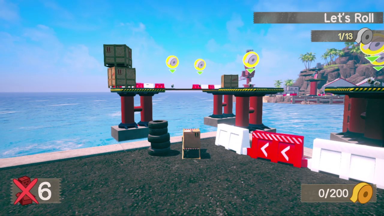 Um an die Briefmarken zu gelangen, gibt es verschiedene Wege. Manche habe ich einfach so in der (recht großen) Welt gefunden, andere musste ich durch das Abschließen von Aufgaben erlangen. Hierbei hat es sich bei meiner Anspielzeit eigentlich nur um kurze Hindernisparcours gehandelt, die es zu überwinden galt. Das war teilweise gar nicht so einfach, schließlich musste ich immer wieder feststellen, dass sich ein quadratischer Karton nicht so einfach steuern lässt, wie man es sich so wünschen würde. Schlecht hat es aber trotzdem nicht funktioniert.